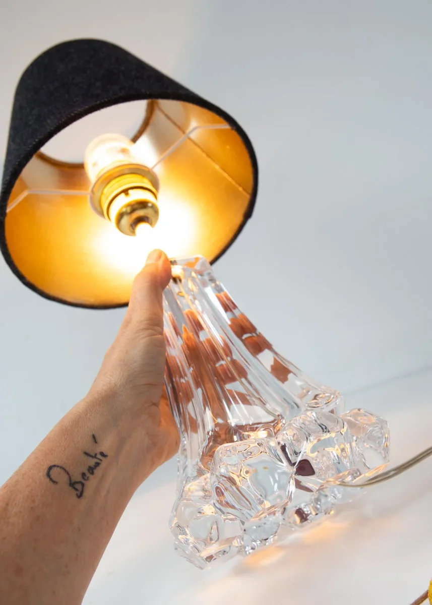 Lámpara mesa francesa cristal con pantalla vaquera (40 cm)