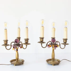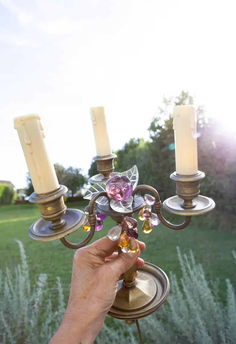 Pareja antiguos «girandoles» franceses con cristales Murano (x UNIDAD)