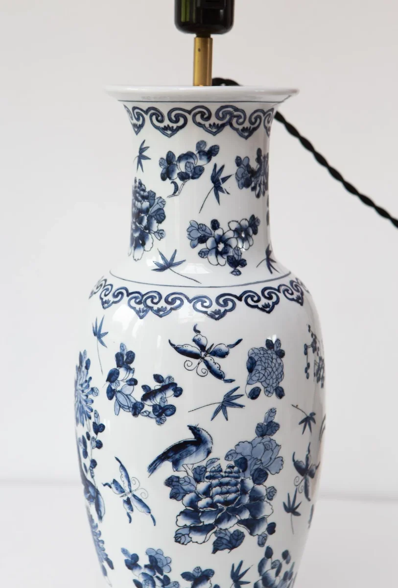 Lámpara de mesa jarrón chino porcelana azul y blanca (55 cm)