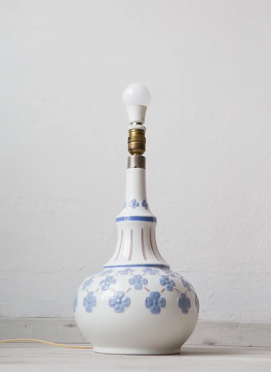 Lámpara de mesa porcelana Lladró flores c. 1970 (31 cm)