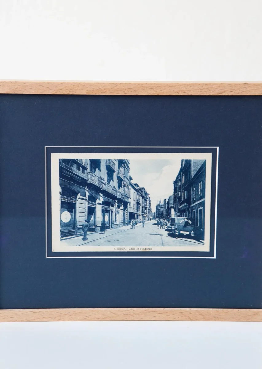 Antique Spanish postcard of the city of Gijón. Newly framed. Dimensions (total): 21,5*26,5 cm. We ship worldwide but shipping costs are not included in the price. Contact us for details.