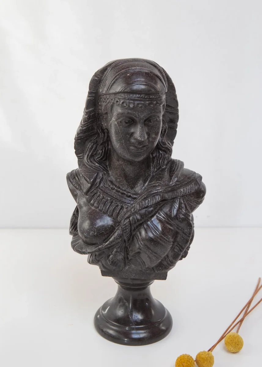 Buste en plâtre d’une jeune femme nommée Viola. Debut 20ème. Dimensions totales: 37*18*13 cm. Les frais d’expédition seront ajoutés dans le panier.
