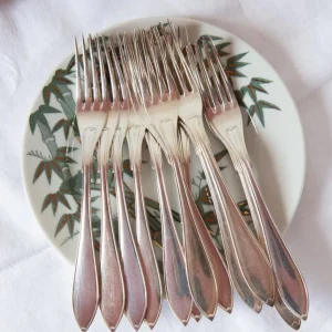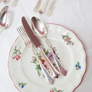 VENDUS Couverts anglais pour dessert par Henry Wilkinson & Co. Nacre et métal argenté. Vers 1900. La cuillère a une petite manque au milieu (voir photo 1). Dimensions et poids: 20/19,5 cm (42 and 37 grammes). Les frais d’expédition seront ajoutés dans le panier.