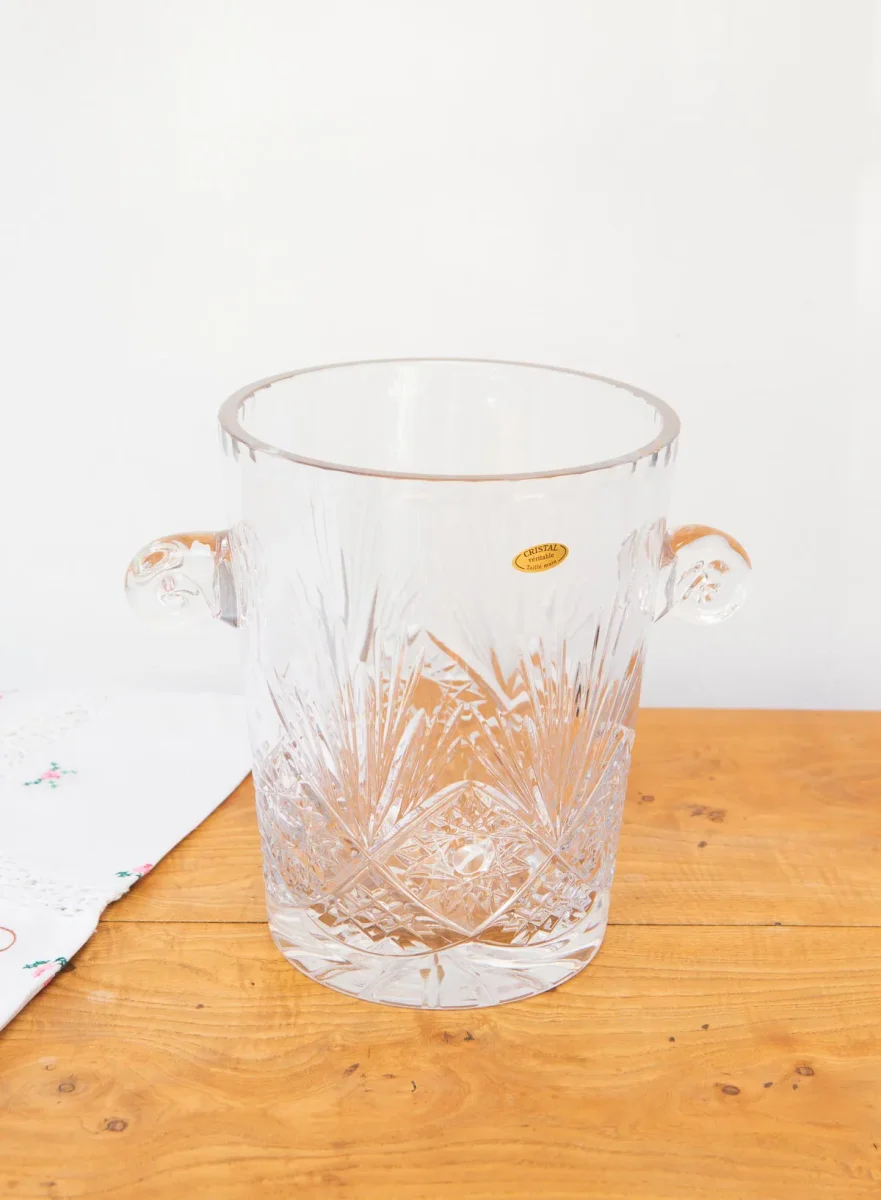 Cubitera o hielera de cristal tallado a mano de la prestigiosa firma KLEIN Bertrichamps BACCARAT, numerada y firmada. Va en su caja original.