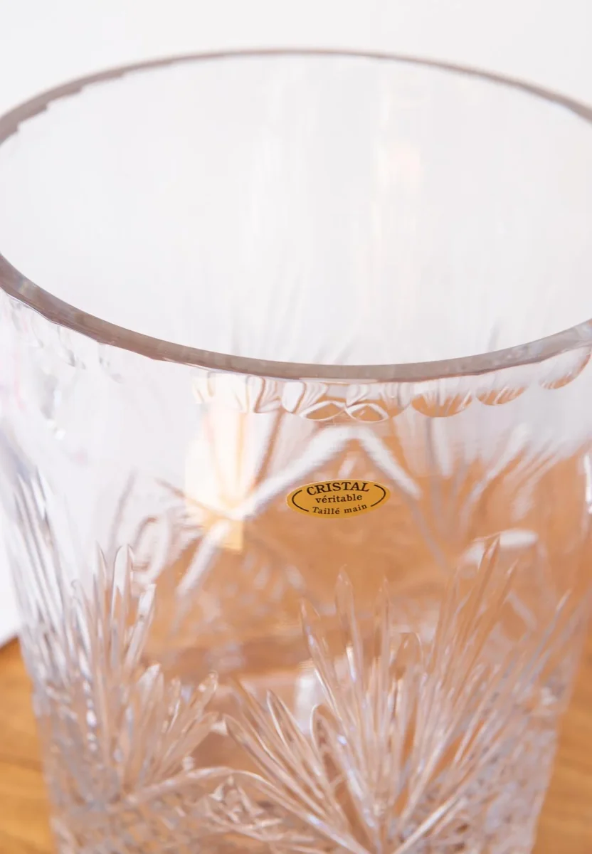 Una maravilla e IMPECABLE. Posiblemente sin estrenar ya que conserva aún la pegatina con la leyenda «Cristal véritable. Taillé main». La caja está, como se ve en las fotos, más estropeada…
