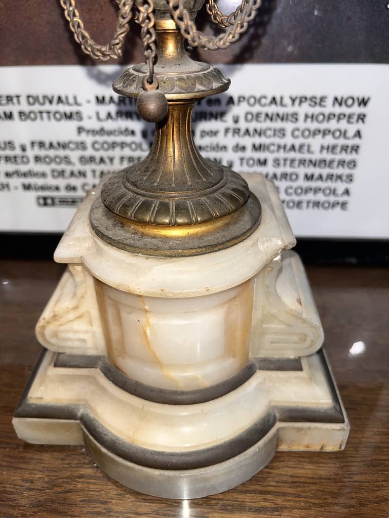 Pareja formada por dos candelabros de bronce con detalles de cristales colgantes en forma de lágrima. Se trata de dos candelabros donde cada uno tiene cuatro soportes para colocar cuatro velas a la vez. Se trata de unos candelabros muy elegantes de estilo clásico perfectos para colocarlos en un salón comedor y aportar un toque de distinción. Como se puede observar en las fotografías se encuentran en buenas condiciones.