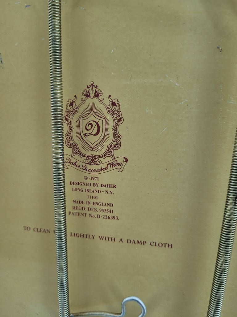 Bandeja metálica decorativa de tamaño mediano. Se trata de una bandeja metálica que tiene una forma ovalada y cuenta con unos dibujos muy bonitos de flores de colores y filigranas de color dorado. Es una bandeja perfecta para colocarla encima de un salón comedor como objeto decorativo. Como se puede observar en las fotografías se encuentra en buenas condiciones.