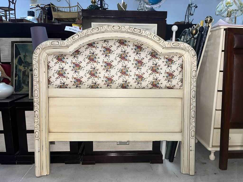 Cabecero que ha sido realizado con madera de buena calidad y robusta. Se trata de un llamativo y elegante cabecero con una parte central acolchada y de decoración de flores multicolor. Es un cabecero muy cómodo, ideal para poder relajar nuestra cabeza cuando estemos en ella y vayamos a, por ejemplo, leer por la noche. Queda ideal en un dormitorio y hacer resaltar nuestra estancia. Como podemos observar en las fotografías se encuentra en buenas condiciones.