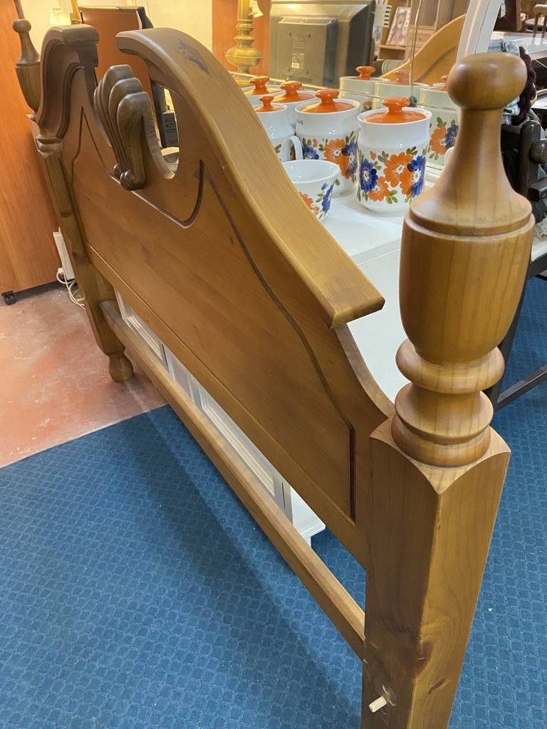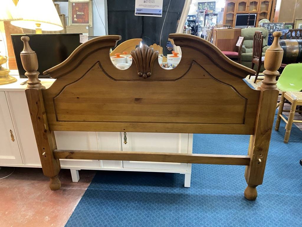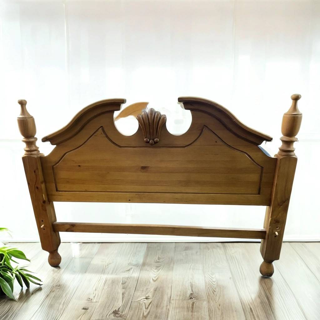 Cabecero de cama de estilo provenzal fabricado en madera de buena calidad de color marrón claro. Se trata de un cabecero de cama que tiene en la parte central una figura que sobresale. Es un cabecero ideal para colocarlo a la cabeza de una cama en un dormitorio individual. Como se puede observar en las fotografías se encuentra en buenas condiciones para ser utilizado.