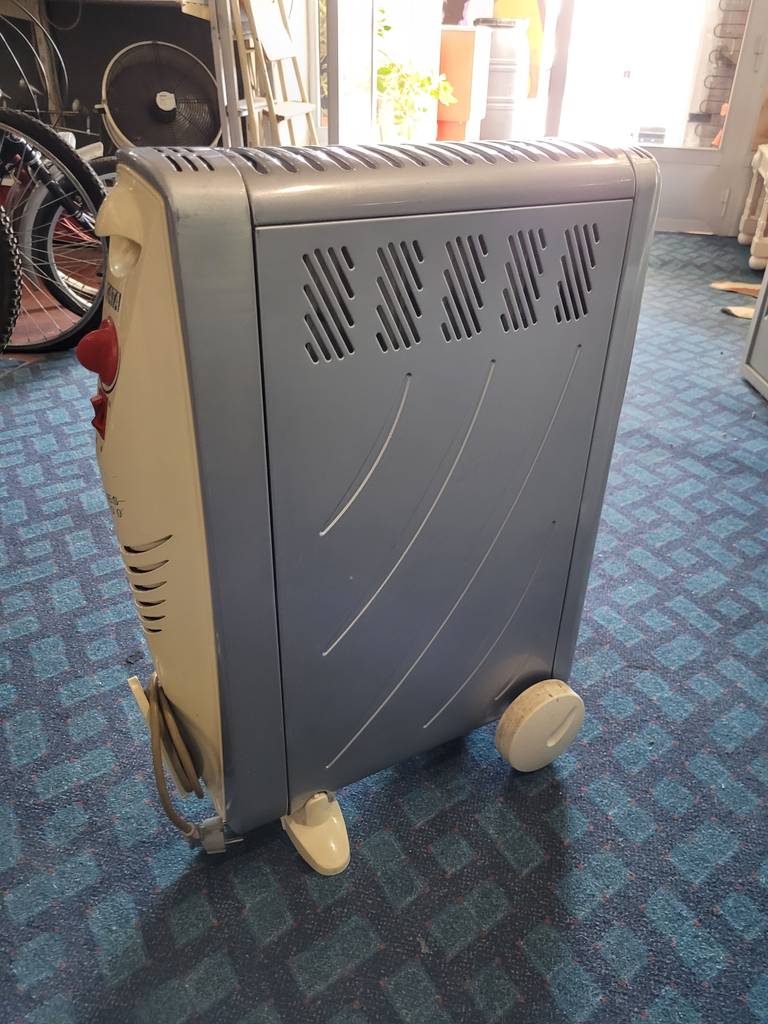 Calentador de la reconocida marca de electrodomésticos Cata. Se trata de un calentador o radiador modelo Aries 2000 que cuenta con un enchufe largo y dos ruedas para poder conectarlo a larga distancia y poder moverlo con gran facilidad. Es un calentador ideal para tener en el hogar para calentar el salón comedor u otra estancia en los fríos meses de invierno. Como se puede observar en las fotografías se encuentra en buenas condiciones.