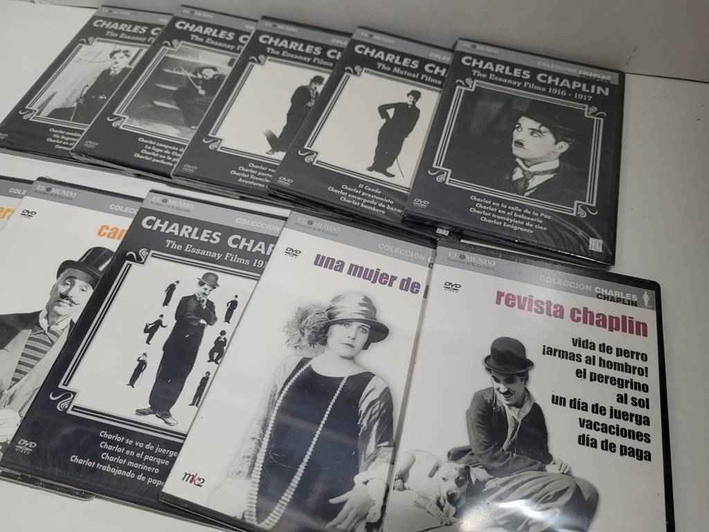 Colección de 10 Dvd ‘s de películas del famoso actor y director Charles Chaplin. Se trata de una colección única con la mejor selección de películas. Es una edición ideal para coleccionistas o amantes del actor o el cine en general. Como podemos observar en las fotografías se encuentran en buenas condiciones.