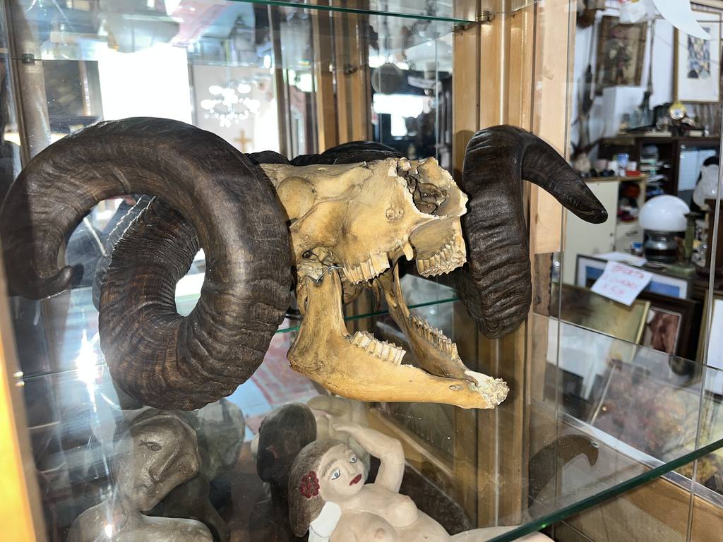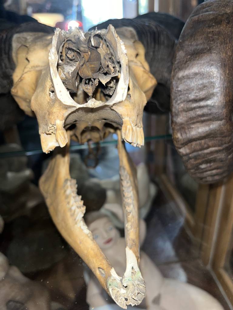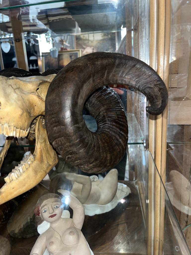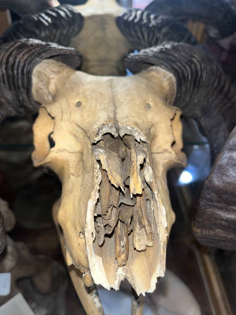 Cráneo de muflón de gran tamaño con dos espectaculares cornamentas. Se trata de un cráneo de muflón bien conservado con dos grandes cuernos y con gran parte de la dentadura original que poseía el animal. Es un objeto especial que le puede gustar a un coleccionista de objetos curiosos o a un cazador. Como se ve en las imágenes está en buenas condiciones.