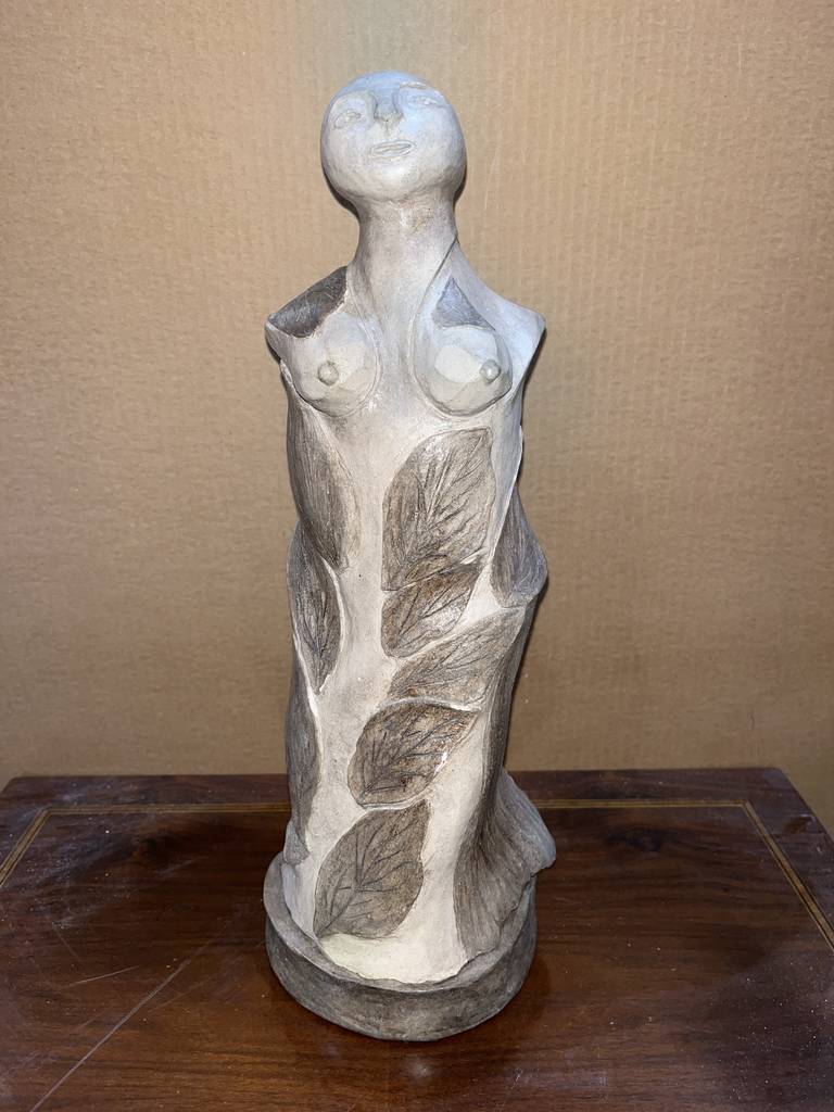 Escultura realizada por el reconocido escultor alicantino Manuel Ferrero. Se trata de una escultura muy llamativa y original que cuenta con una base robusta y rectangular para sostener la escultura que tiene una forma de un tronco de una persona sin brazos ni piernas. Es una escultura perfecta para ponerla encima de una cómoda en un salón comedor. Como se puede observar en las fotografías se encuentra en buenas condiciones.
