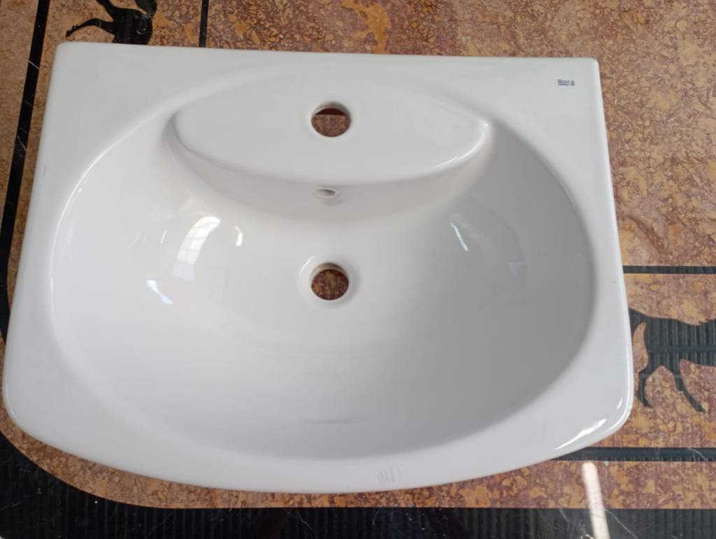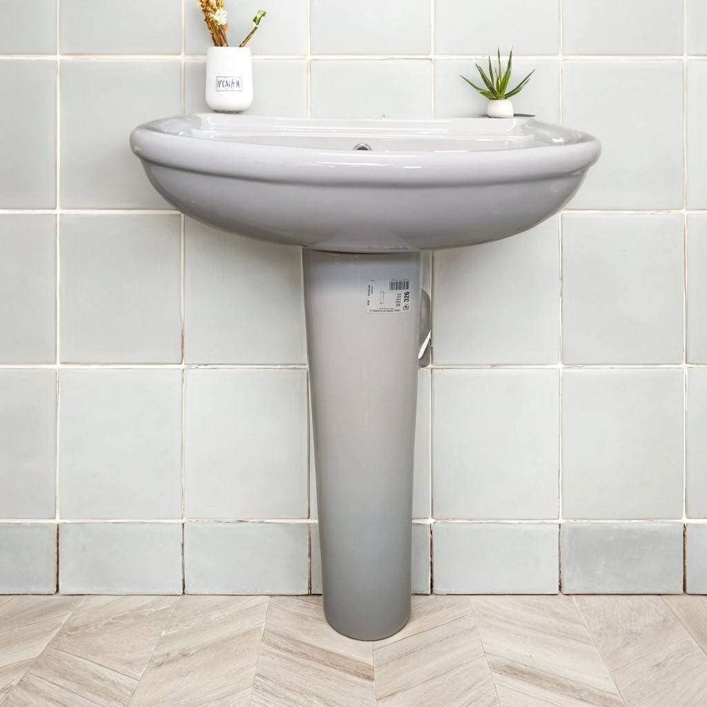 Lavabo con pedestal incluido nuevo en color blanco que ha sido fabricado con porcelana de buena calidad. Es un lavabo ideal para colocar en un aseo sustituyendo uno antiguo o en un aseo recién reformado. Como podemos observar en las fotografías se encuentra en buenas condiciones aunque tiene un ligero rasguño, cumple su función perfectamente.