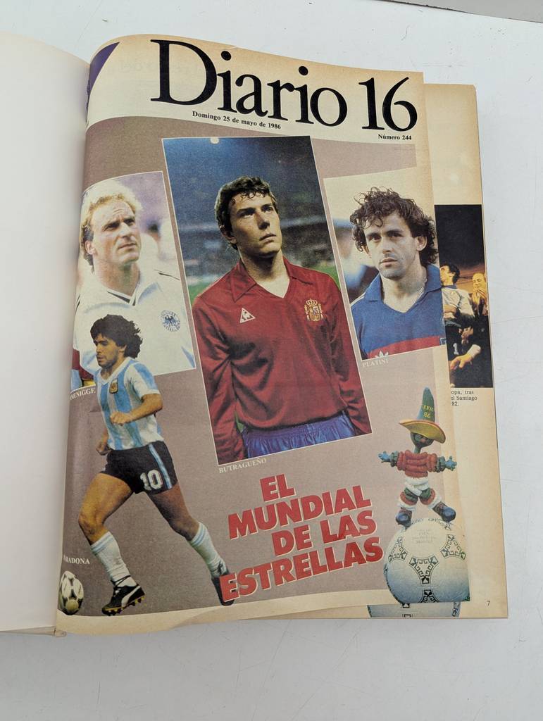 Libro Mundial 16 de color blanco que recoge información concreta sobre el mundial de fútbol celebrado en la ciudad latinoamericana de México en el año 1986. Se trata de un libro sobre anécdotas y diversas informaciones que acontecieron a lo largo del mundial de fútbol del pasado siglo. Es un libro perfecto para coleccionistas de objetos clásicos relacionados con el fútbol. Como se puede observar en las fotografías se encuentra en buenas condiciones.