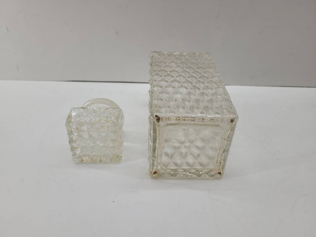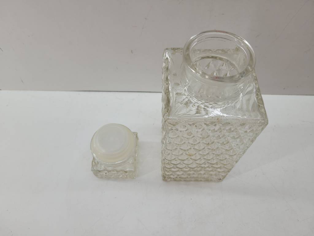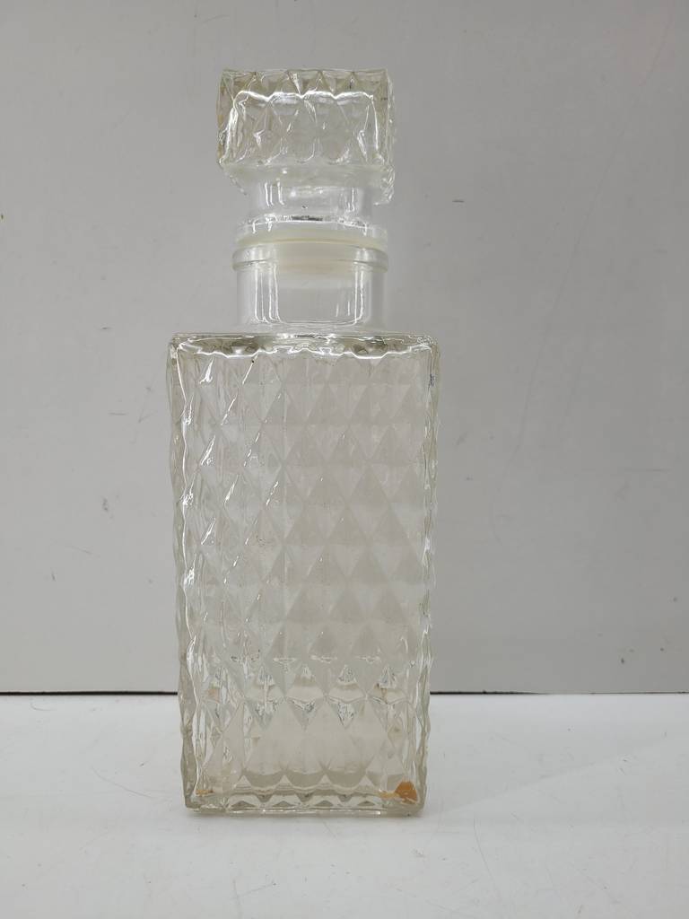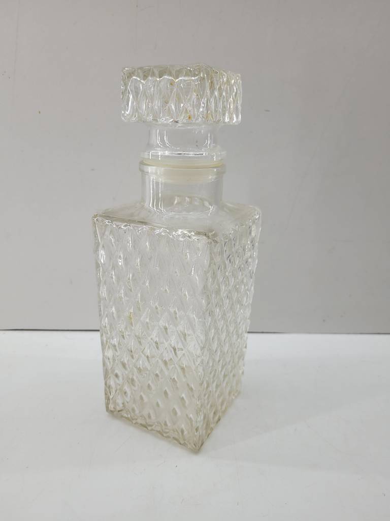 Botella licorera fabricada en cristal tallado de buena calida de color transparente. Se trata de una botella de licor que tiene una forma cuadrada y lleva un tapón incorporado para mantener dentro el líquido en buen estado. Es una botella ideal para ponerla en un salón comedor a modo decorativo o para servir dentro algún licor. Como se puede observar en las fotografías se encuentra en buenas condiciones.