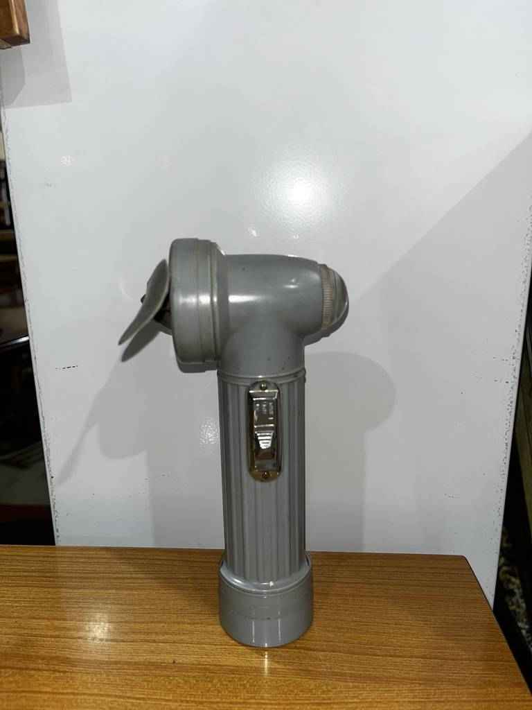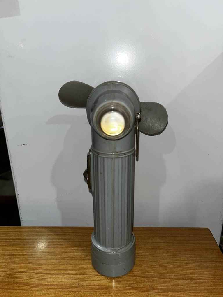 Linterna ventilador antigua con un estilo clásico. Está linterna ventilador ha sido fabricada con plástico duro de buena calidad y está pintada en color gris. Dispone en un lateral el interruptor de encendido y apagado. Es ideal como pieza de colección puesto que se desconoce si funciona. Como podemos observar en las fotografías presenta desgaste del tiempo y uso.