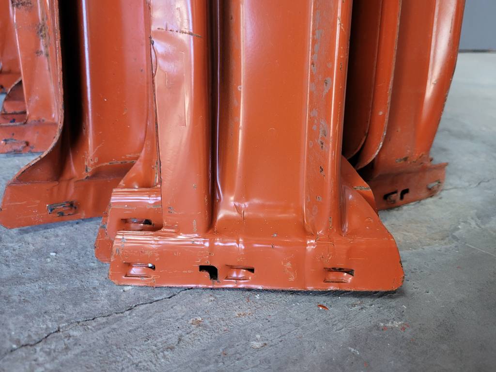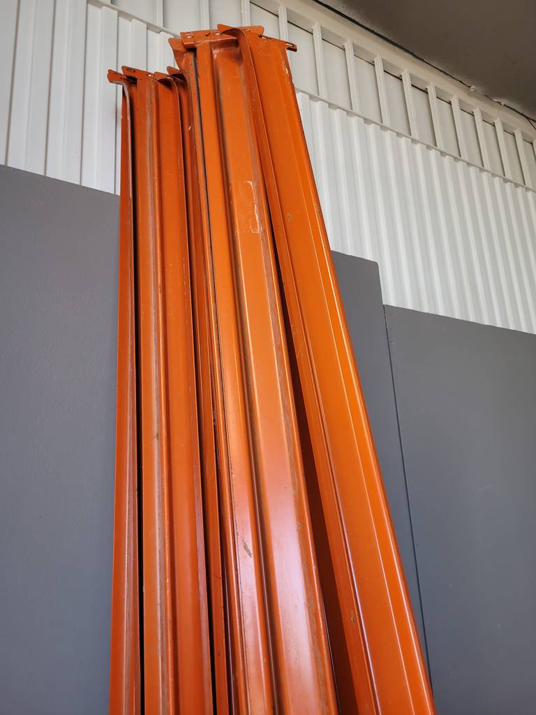 Lote compuesto por un total de dieciocho largueros de la marca Mecalux de color naranja. Se trata de un lote o un conjunto formado por dieciocho largueros que tienen una medida de más de dos metros cada uno. Son unos largueros muy resistentes que se pueden utilizar para cualquier tipo de obra. Como se puede observar en las fotografías se encuentran en buenas condiciones.