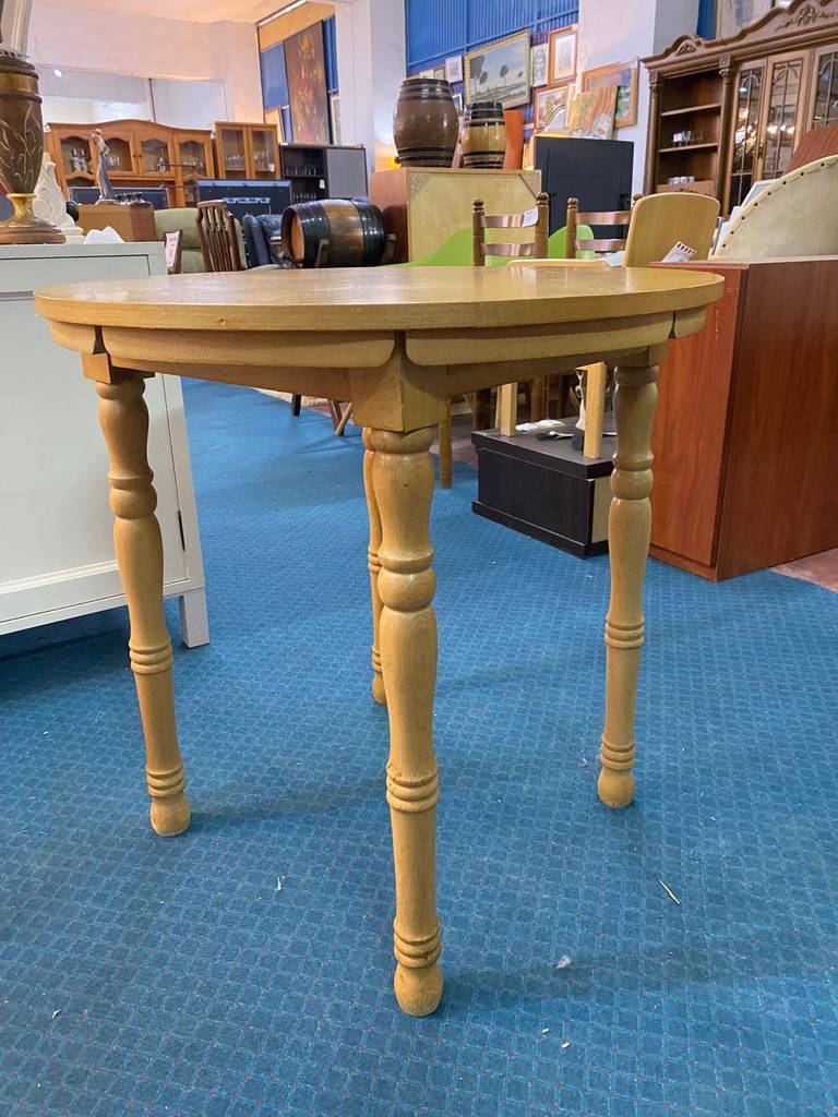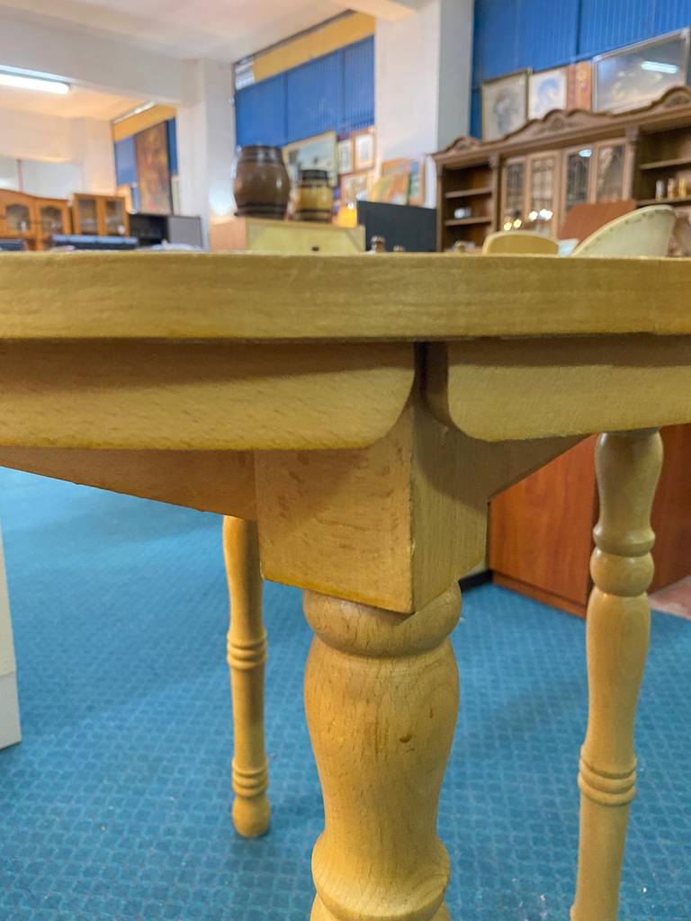 Mesa de comedor con forma redonda que ha sido fabricada con madera de buena calidad y robusta. Se trata de una mesa con cuatro patas que han sido talladas en forma de columnas que la hace resaltar. Es ideal para colocar en un salón comedor o en una cocina. Como podemos observar en las fotografías se encuentra en buenas condiciones.