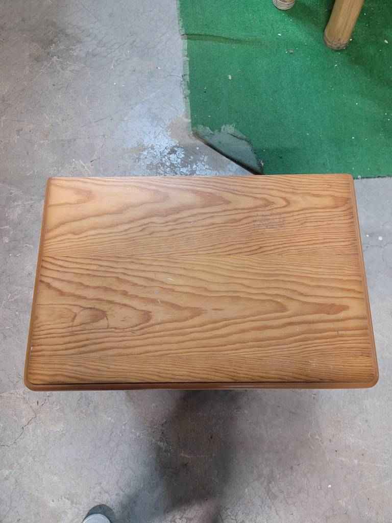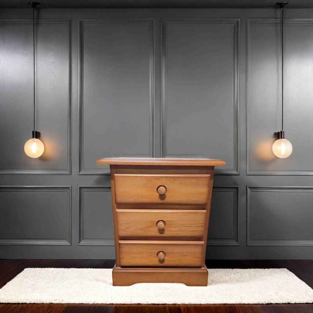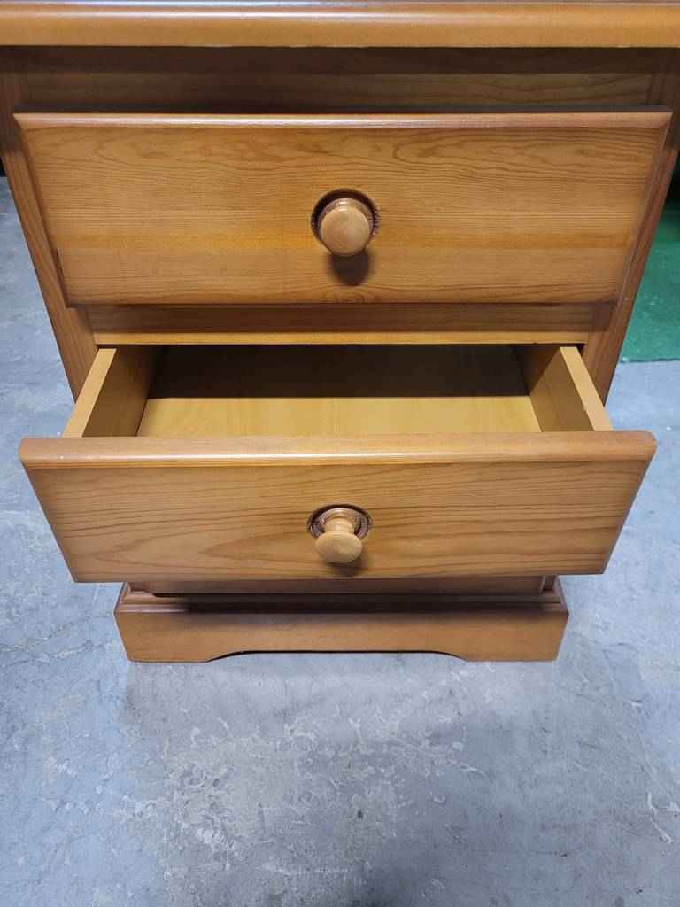 Mesita de noche de estilo rústico que ha sido realizada con madera de buena calidad y robusta. Se compone de una parte frontal con tres cajones medios que incorporan tiradores de madera para abrirlos fácilmente. Es una mesita ideal para colocar en un dormitorio individual al lado de nuestra cama. Como podemos observar en las fotografías se encuentra en buenas condiciones.