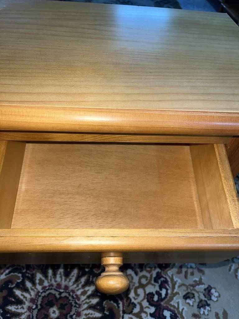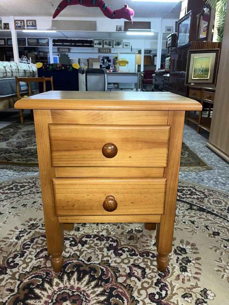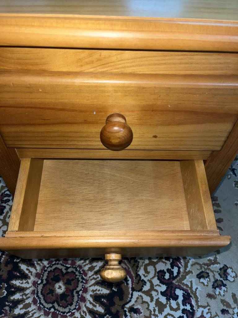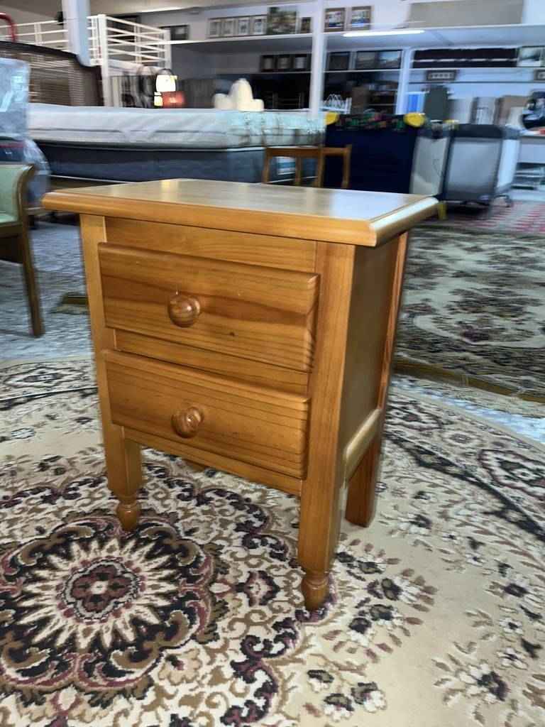 Mesita de noche de estilo rústico, hecha de madera de buena calidad y robusta, color marrón. Dispone de dos pequeños cajones en la parte frontal, con tiradores que facilitan su apertura. Es ideal para colocarla junto a la cama, y darle con ella, un toque rústico al dormitorio. Se encuentra bien cuidada como se puede apreciar en las fotografías.