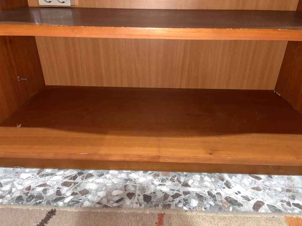 Mueble de comedor de grandes dimensiones fabricado en madera de buena calidad de color marrón. Se trata de un mueble que dispone de un habitáculo perfecto para colocar una televisión y dispone de varias puertas para guardar enseres, dos de ellas con un cristal translúcido. Es ideal para ponerlo en un salón comedor que disponga de espacio. Como se ve en las imágenes se encuentra en buenas condiciones.