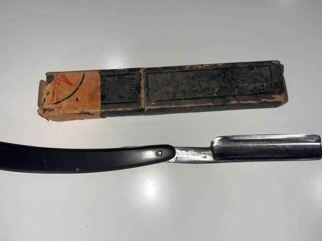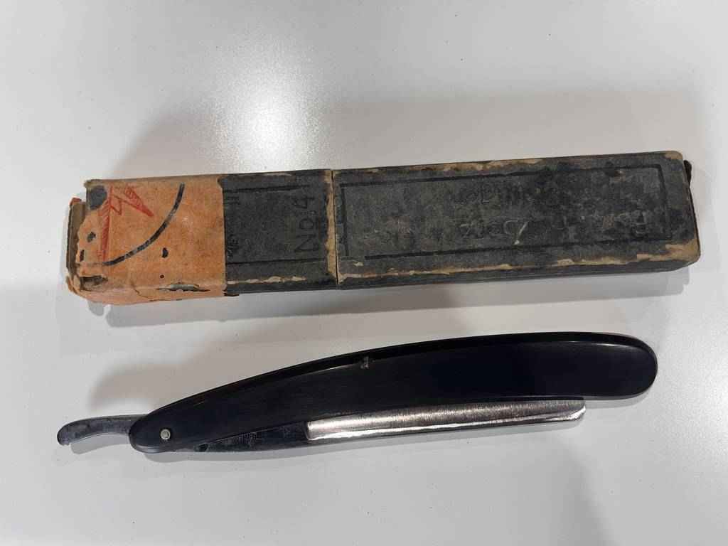 Navaja de barbero de la marca SOLINGEN-F.HERZBERG. Se trata de una navaja con un buen mango de color negro. Es ideal para barberos experimentados o también para los que quieran darle un toque clásico a su negocio a modo de decoración. También sirve para coleccionar. Incluye su caja original. Como podemos observar en las fotografías presenta desgaste.