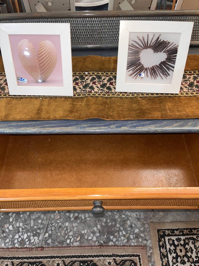 Conjunto formado por un mueble recibidor amplio que va acompañado de un espejo. Se trata de un recibidor de color marrón claro y gris que tiene cuatro puertas y tres cajones con tiradores redondos para facilitar su apertura. El recibidor va a conjunto de un espejo de grandes dimensiones con una forma rectangular y un marco grueso. Es un conjunto perfecto para ponerlo en la entrada de un hogar. Como se ve en las imágenes está en buen estado.