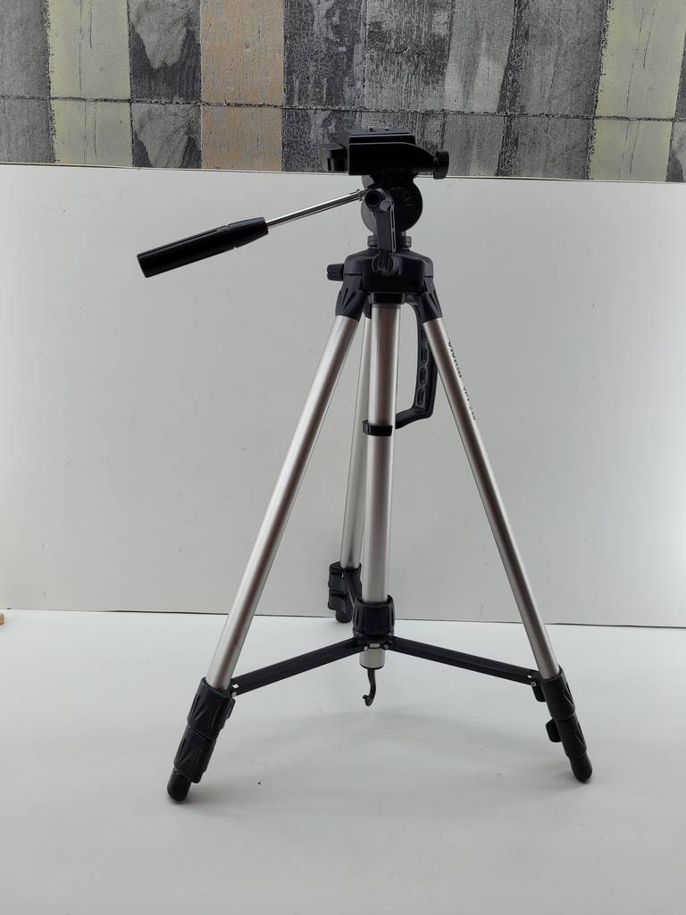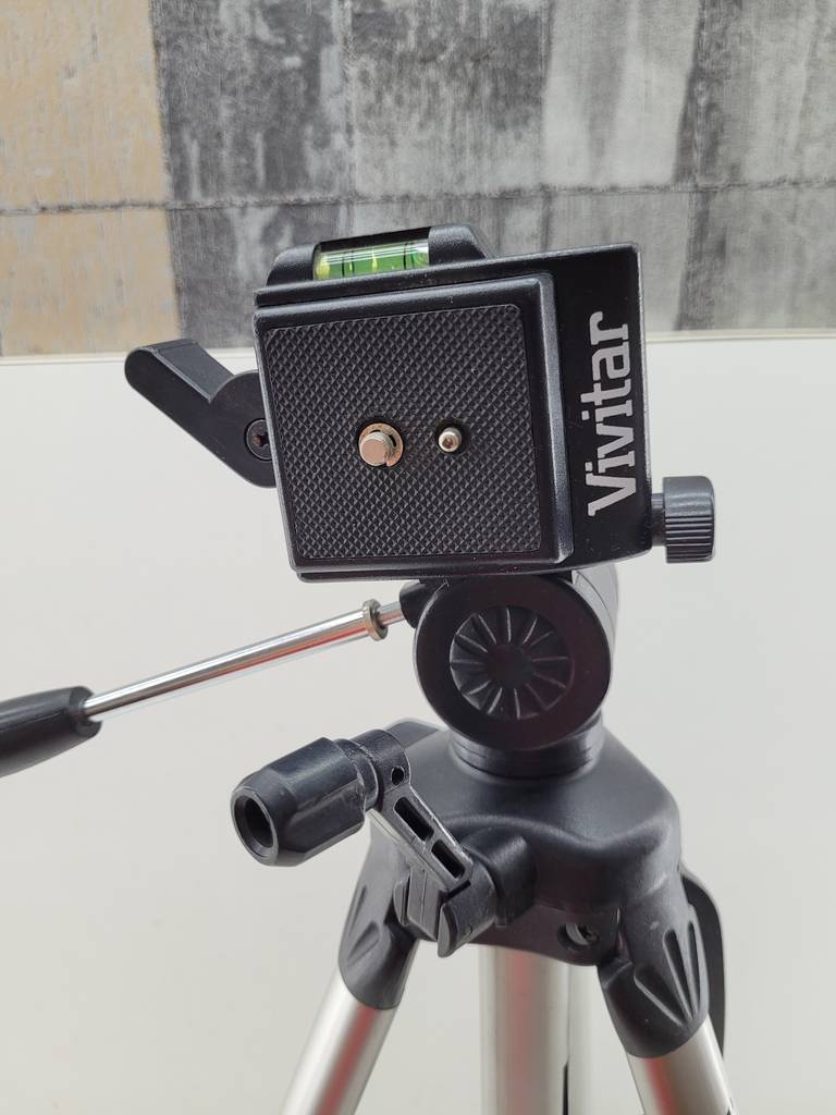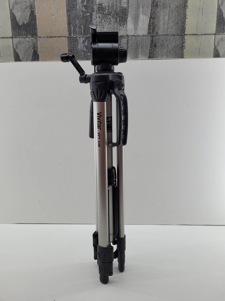 Trípode fotográfico fabricado con materiales de buena calidad de color gris y negro de la marca Vivitar modelo VPT240. Se trata de un trípode que tiene tres patas y una palanca en la parte superior para poder mover la cámara una vez sujeta. Es un trípode ideal si te gusta la fotografía para poder poner la cámara y hacer fotos con mayor estabilidad. Como se puede observar en las fotografías se encuentra en buen estado.