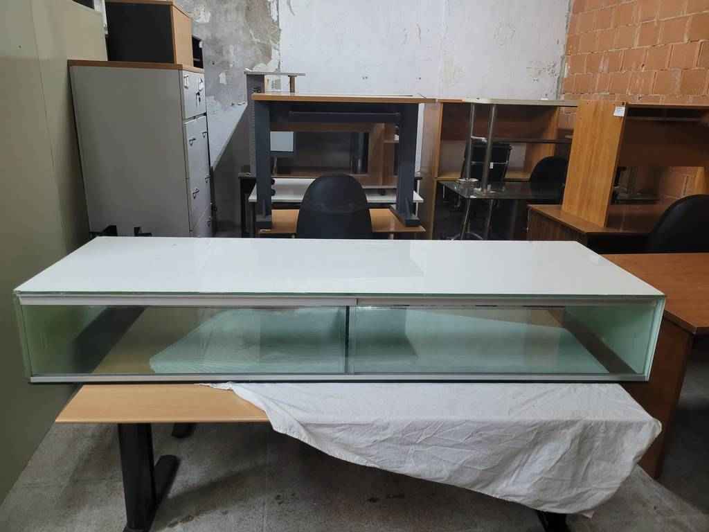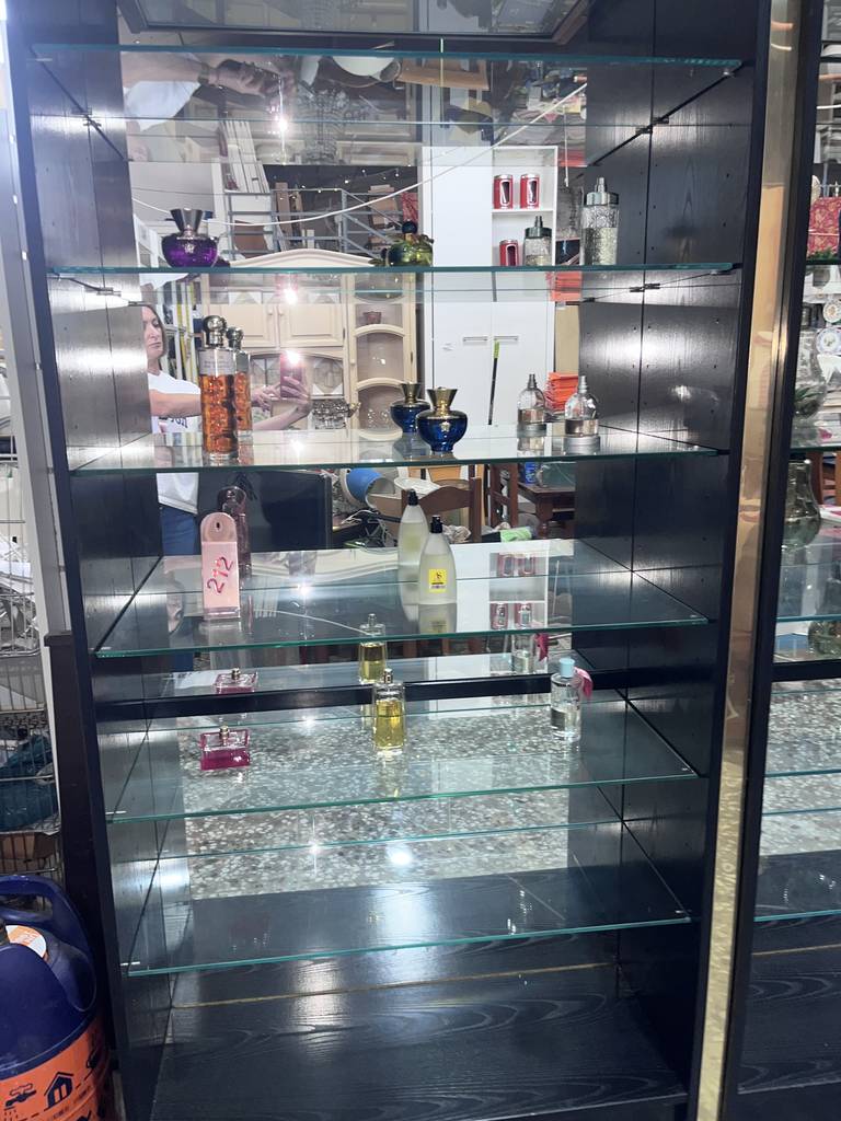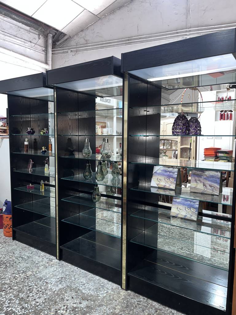 Vitrina de comercio de grandes dimensiones fabricada en madera de buena calidad de color negro y cristal. Se trata de una vitrina grande de comercio que está dividida en tres estanterías de gran tamaño y cuenta con varias lejas de cristal y gran espacio para colocar objetos. Es una vitrina ideal para tenerla en un comercio. Como se puede observar en las fotografías se encuentra en buenas condiciones.
