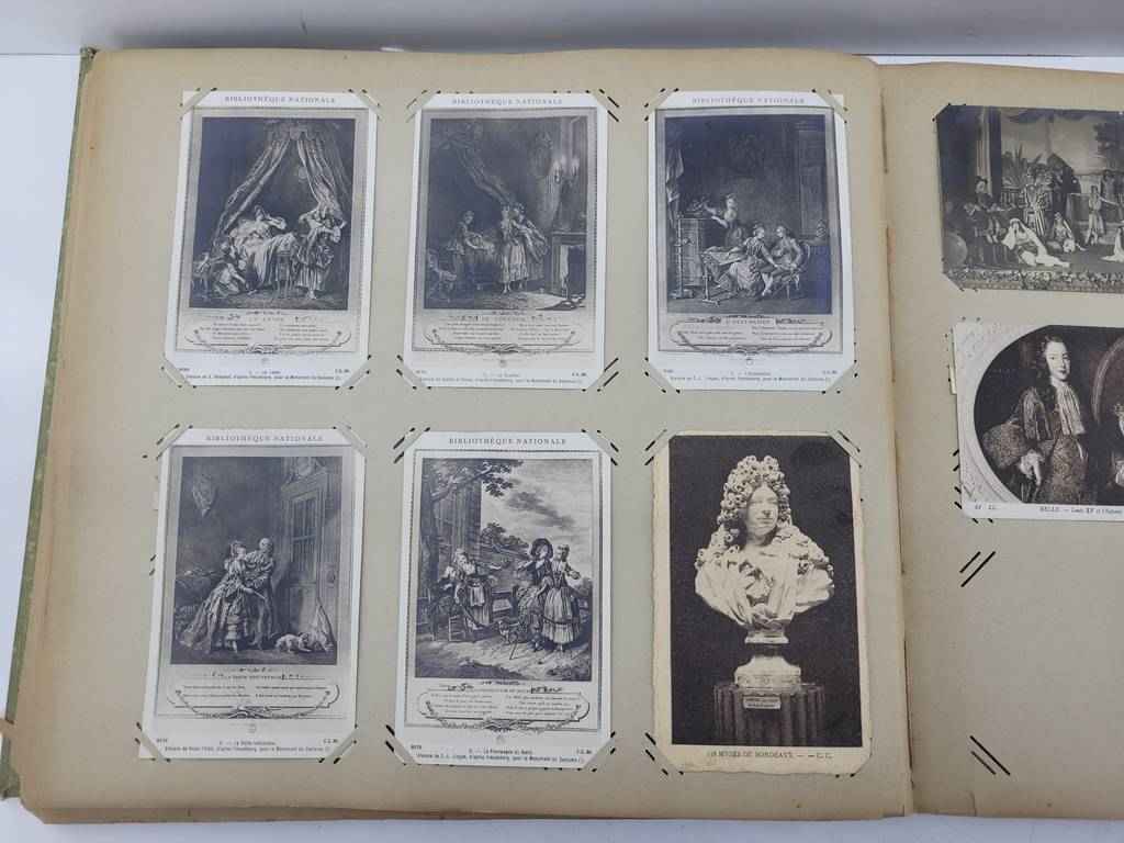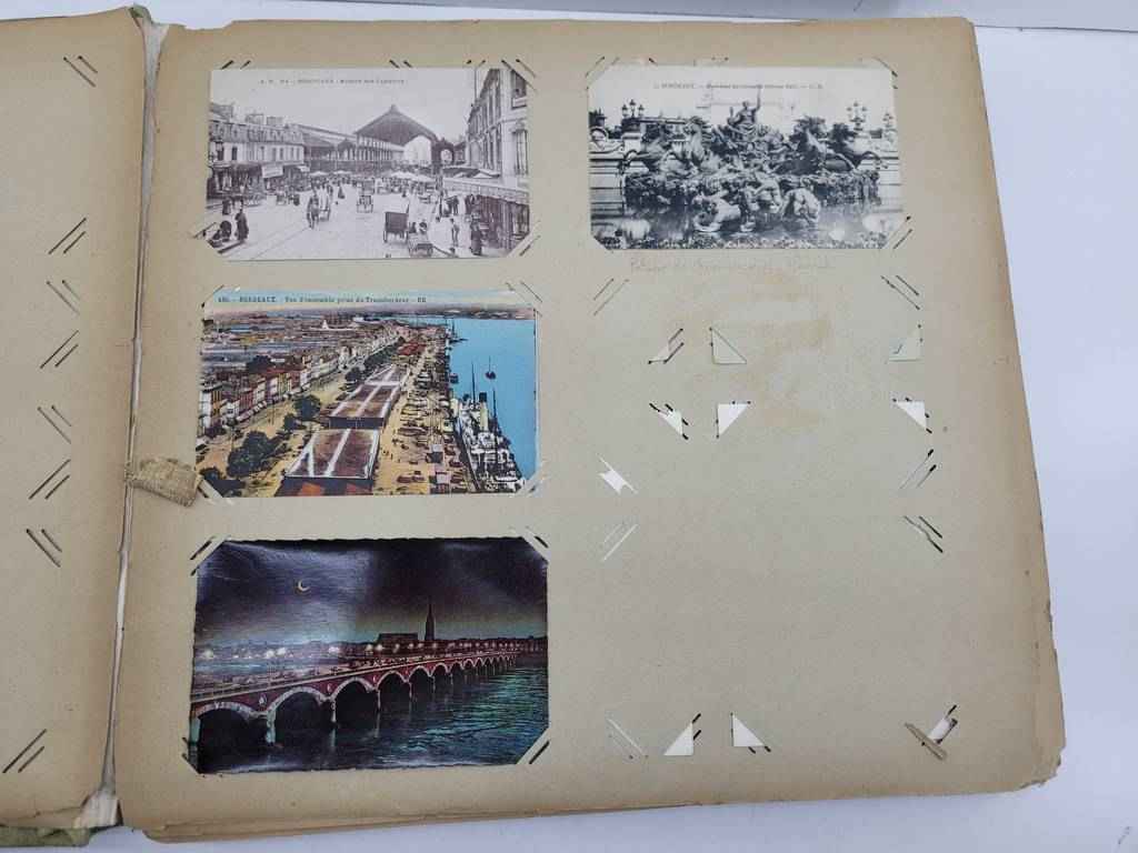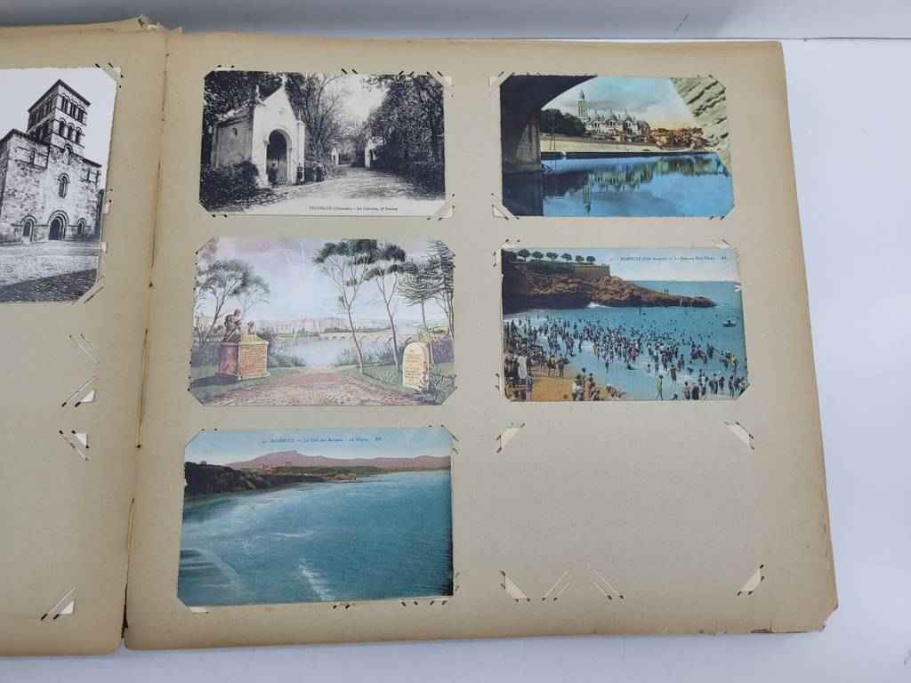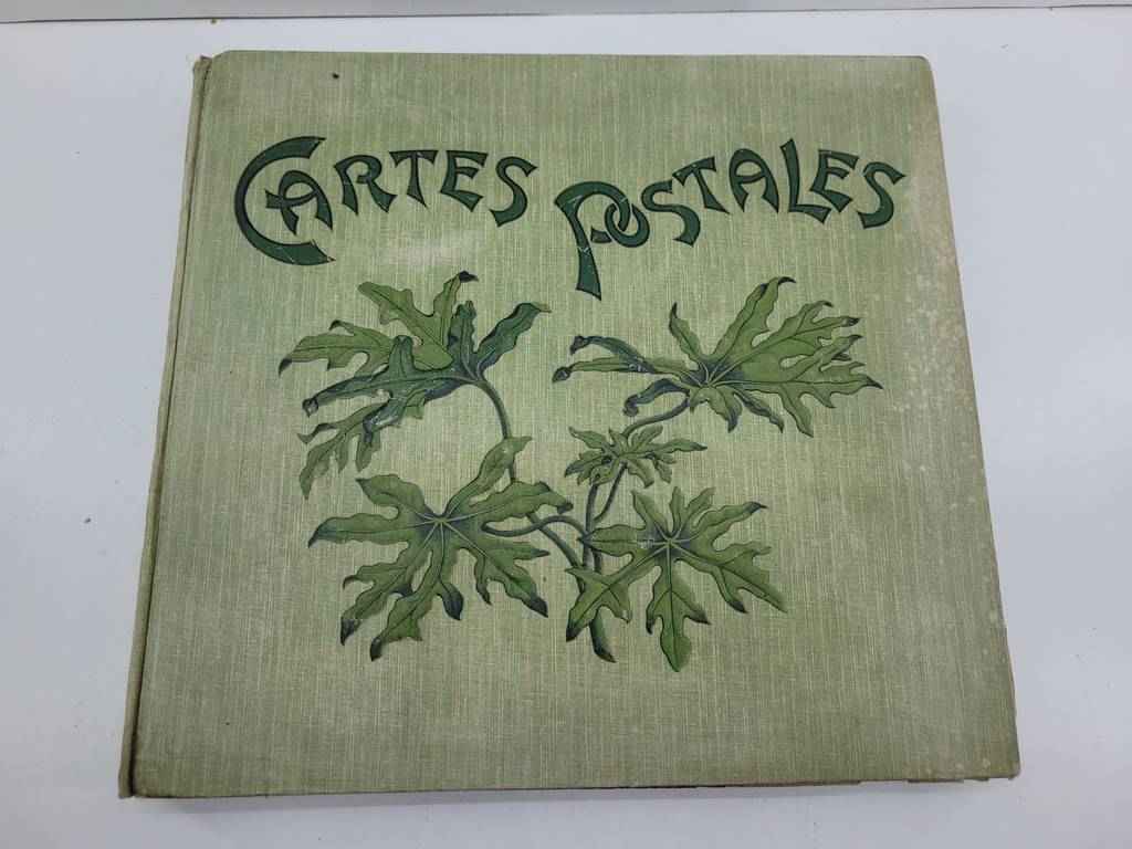 Álbum de postales clásicas de color verde que lleva en la portada escrito la frase Cartes postales y tiene unas hojas verdes dibujadas. Se trata de un álbum que recoge postales antiguas que van desde finales del siglo XIX hasta principios del siglo XX. Es una recopilación de postales españolas, francesas y belgas y hay un total de ciento ochenta. Como se puede observar en las fotografías se encuentra en buen estado.