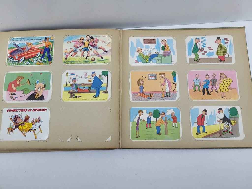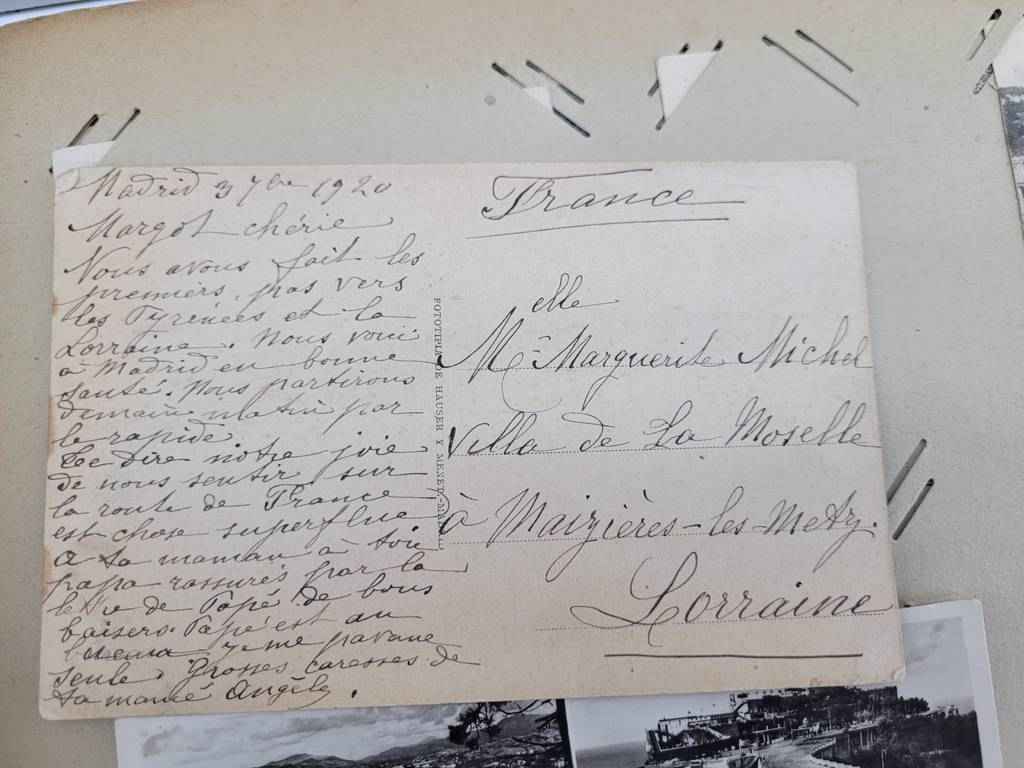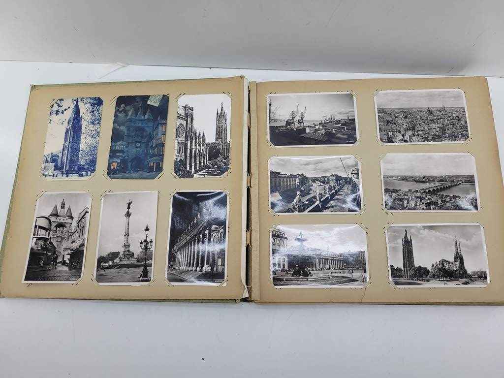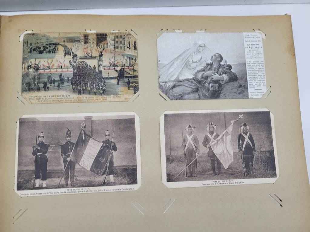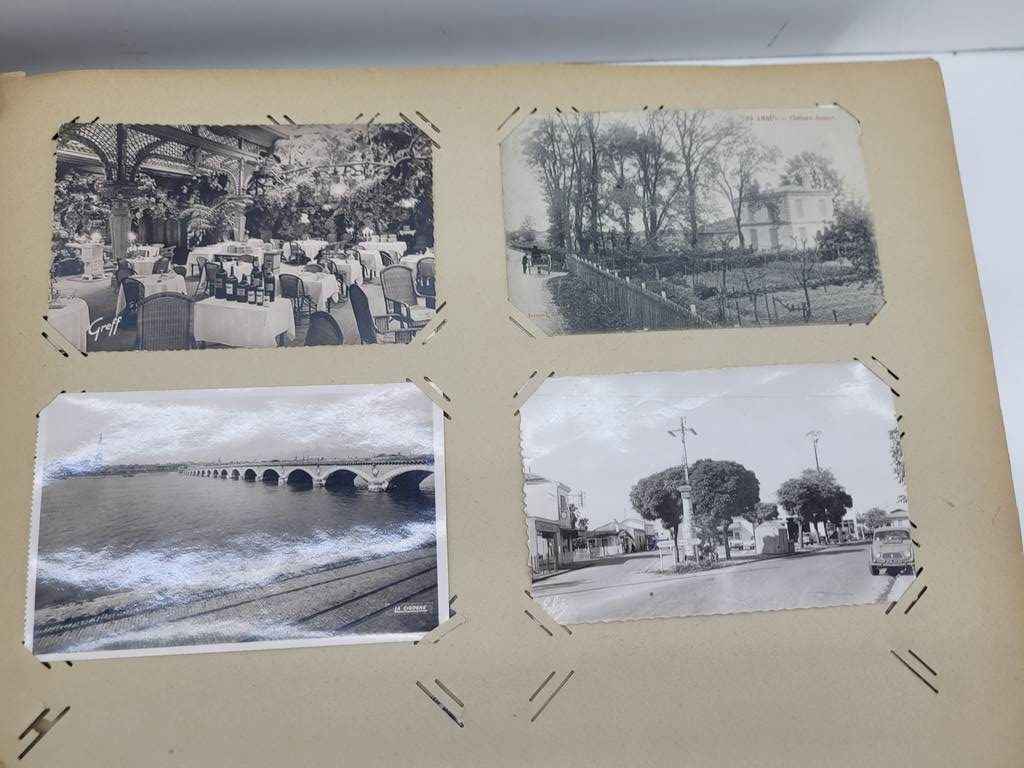 Álbum de postales clásicas de color verde que lleva en la portada escrito la frase Cartes postales y tiene unas hojas verdes dibujadas. Se trata de un álbum que recoge postales antiguas que van desde finales del siglo XIX hasta principios del siglo XX. Es una recopilación de postales españolas, francesas y belgas y hay un total de ciento ochenta. Como se puede observar en las fotografías se encuentra en buen estado.