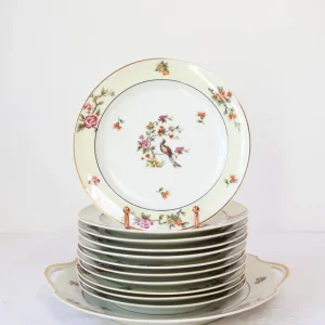 VENDUE Suite de 17 pièces en porcelaine chinoise très fine. Toutes les pièces son peintes à la main. Pas d’éclats. Dimensions: ⌀ 11,5 à 14,5 cm (soucoupes). Les frais d’expédition seront ajoutés dans le panier