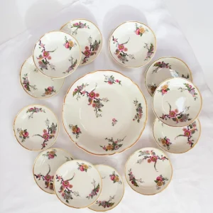 Service à dessert en porcelaine représentant des métiers du vieux Paris. 13 pièces impeccables (12 assiettes et un plat). Dimensions: ⌀ 19,5 cm. Les frais d’expédition seront ajoutés dans le panier.