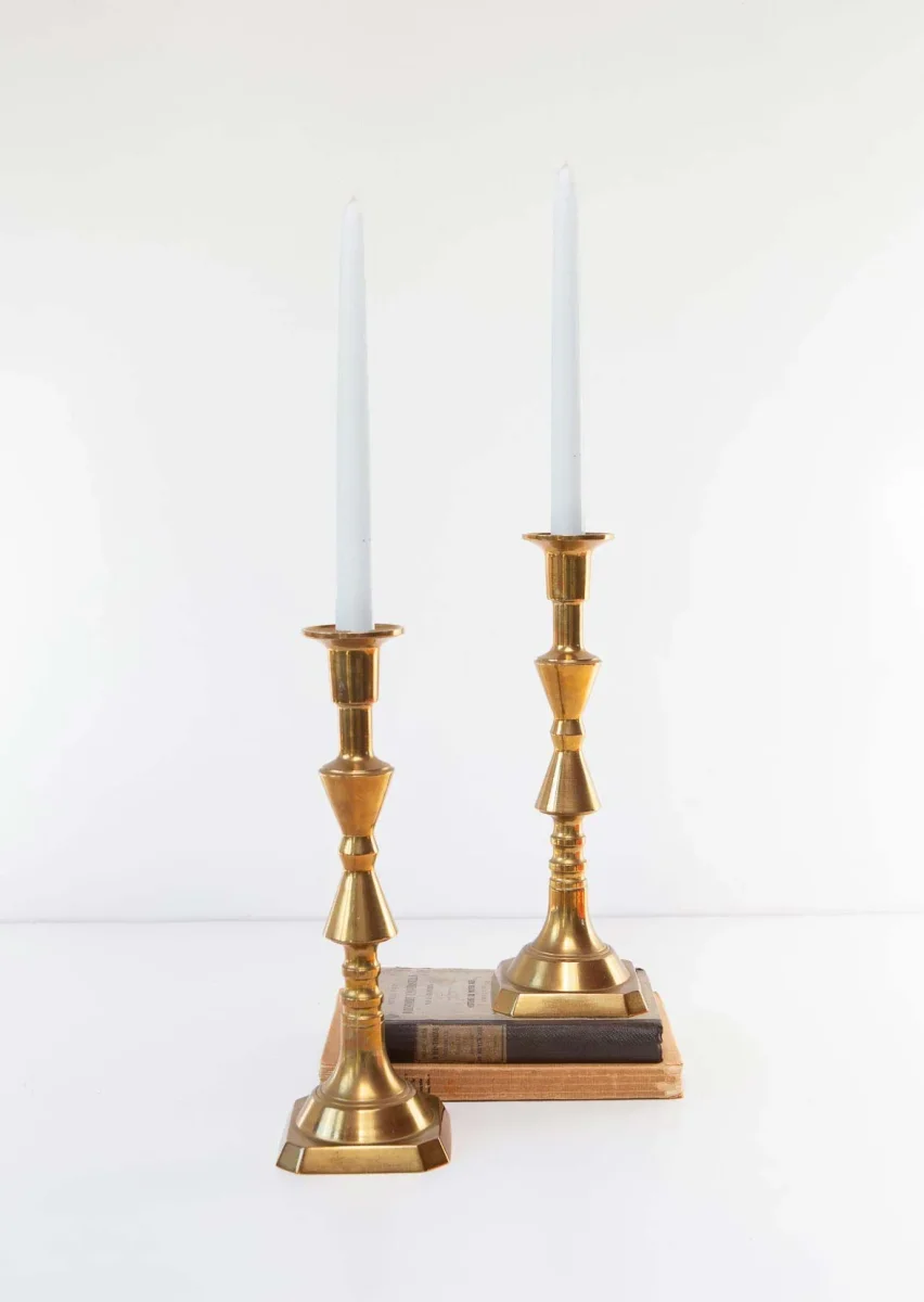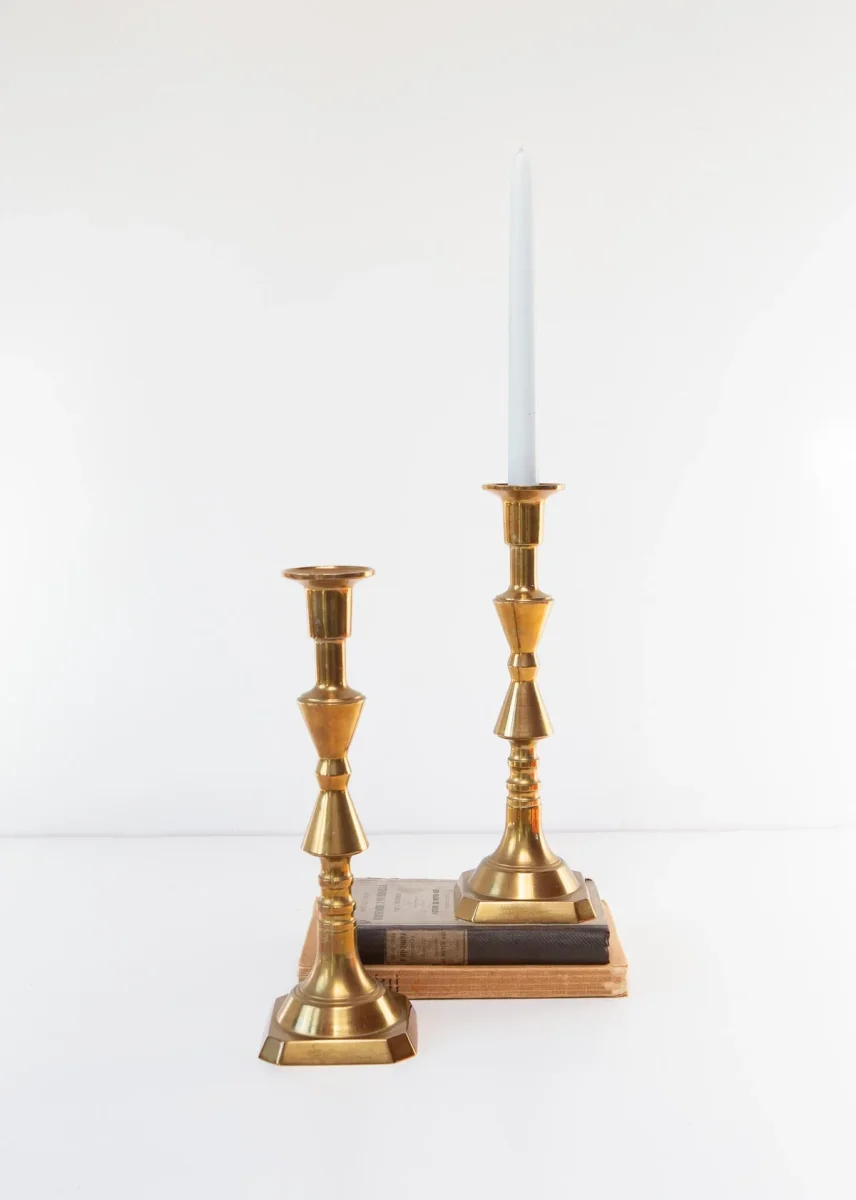 Paire de bougeoirs vintage suédois en laiton doré. 20ème. Dimensions: 27,5 cm haut, 9,5 cm diamètre. Les frais d’expédition seront ajoutés dans le panier.