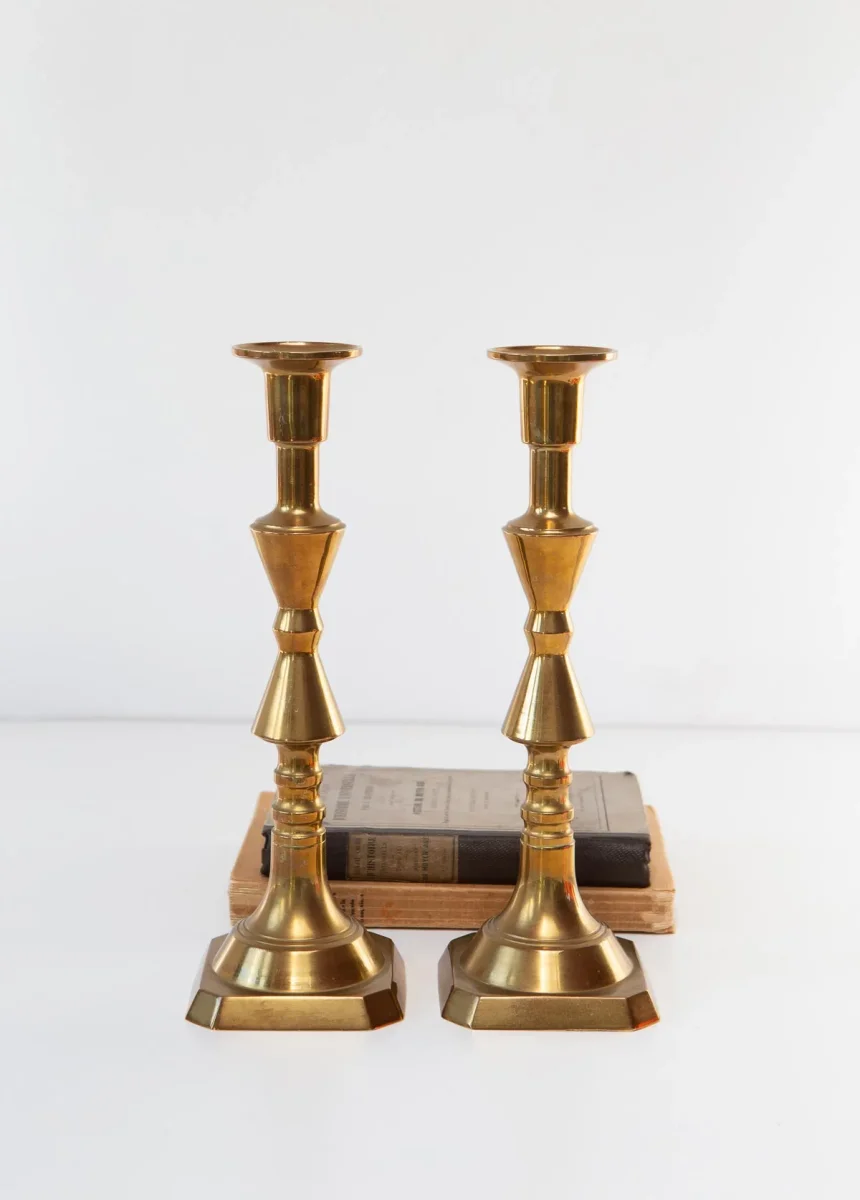 Pareja de candeleros suecos de latón dorado. s. XX. Son pesados y de gran calidad.