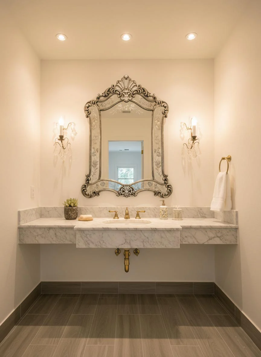 Funcionan con una bombilla tipo E14 (rosca pequeña) cada uno. En una de las fotos los ves a ambos lados de un espejo en un baño. Ten en cuenta que por su diseño no cubrirían los agujeros por los que sale la parte eléctrica de la pared. Son perfectos como candeleros de pared.