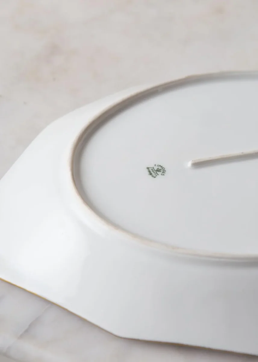 Pareja de grandes fuentes ovaladas de la más fina porcelana «Unique» Limoges, posiblemente de los años 20/30 y de estilo art decó. El precio es de la pareja