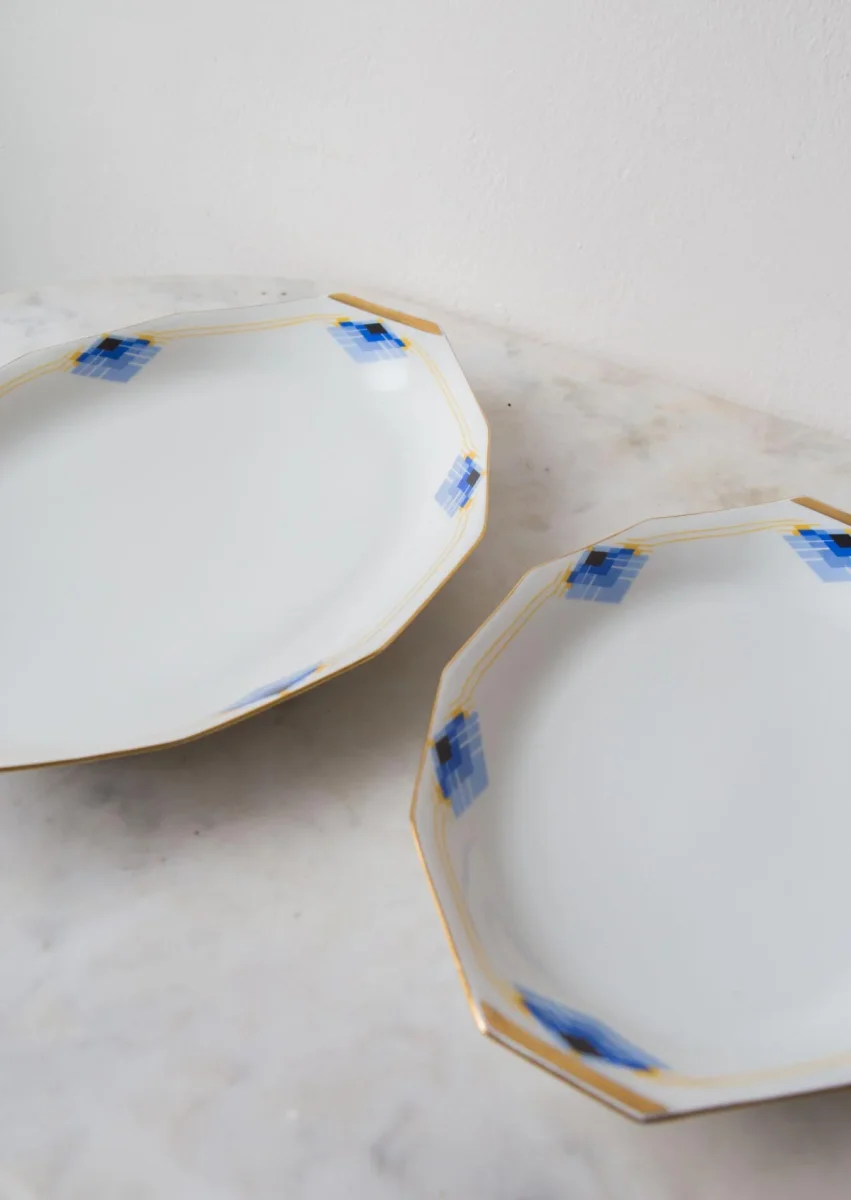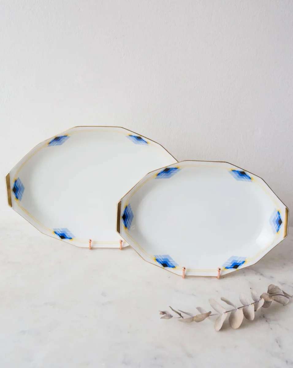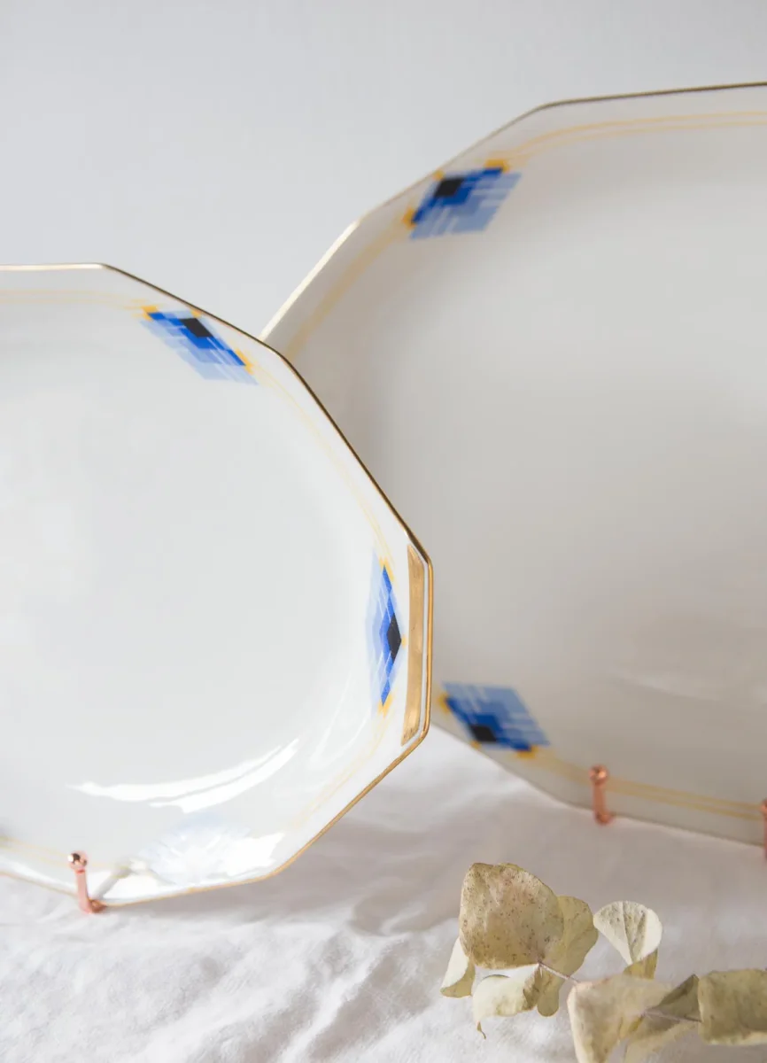 Pair of art deco French serving plates. 20s/30s. Unique Limoges. Mint condition. Dimensions: 41,4*28 cm & 35*24,5 cm. We ship worldwide. Shipping costs will be added at checkout.