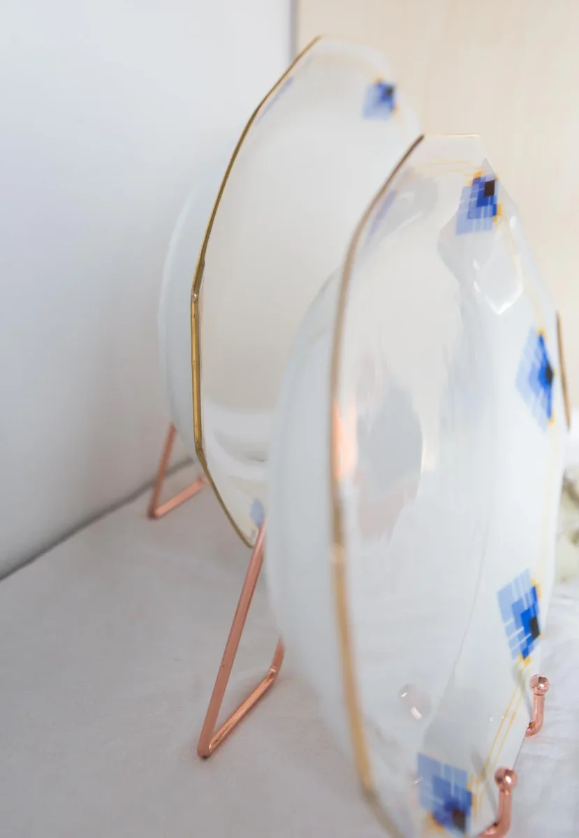Nos encanta el color azul en distintos tonos combinado con los ribetes dorados.