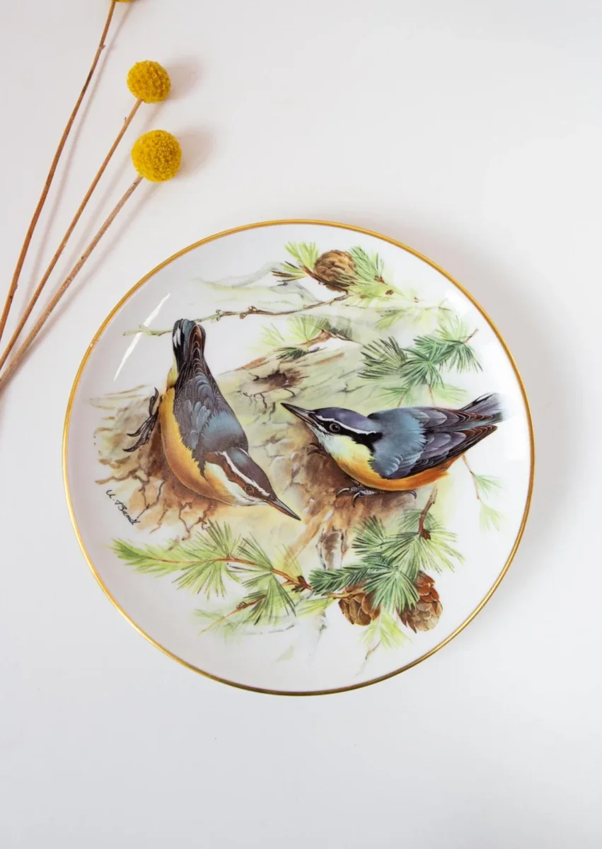 Decorative plate by Tirschenreuth. Collection “European singer birds”. Edited in 1986 by WWF. We have several plates from this collection. Original painting from Ursula Band. 22 gold karat trim. As new. Mint condition. Dimension: ⌀ 19,5 cm. We ship worldwide but shipping costs are not included. Contact us for details.