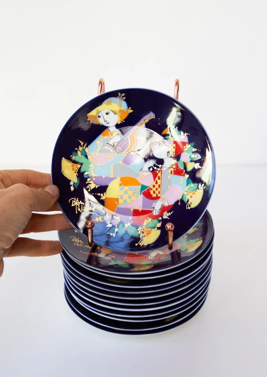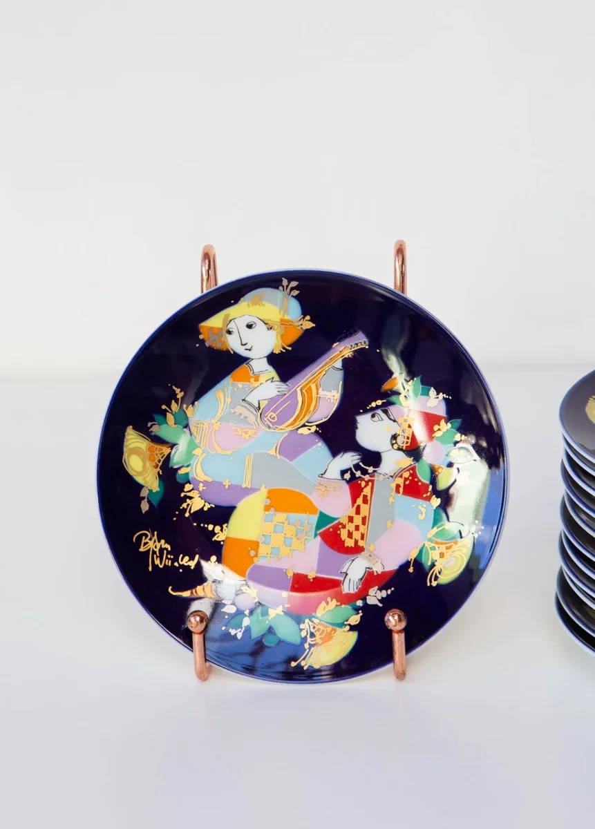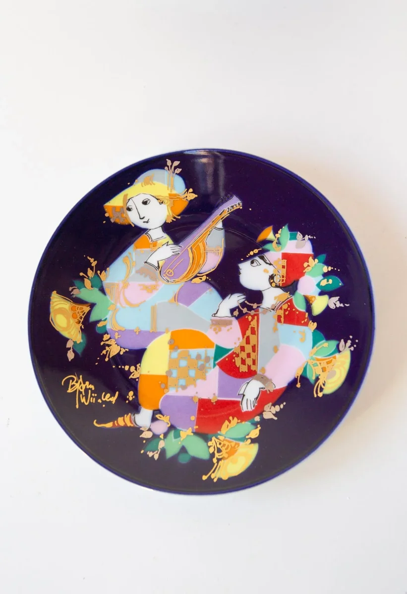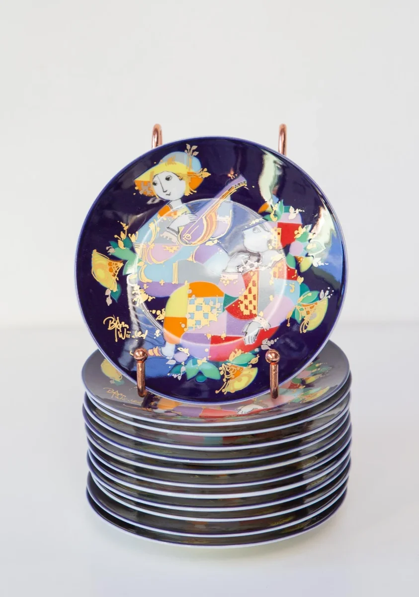 DelicadÃsimos y coloristas platos de porcelana de los años 70/80 de la prestigiosa firma alemana Rosenthal con una ilustración del diseñador danés Bjorn Wiinblad.