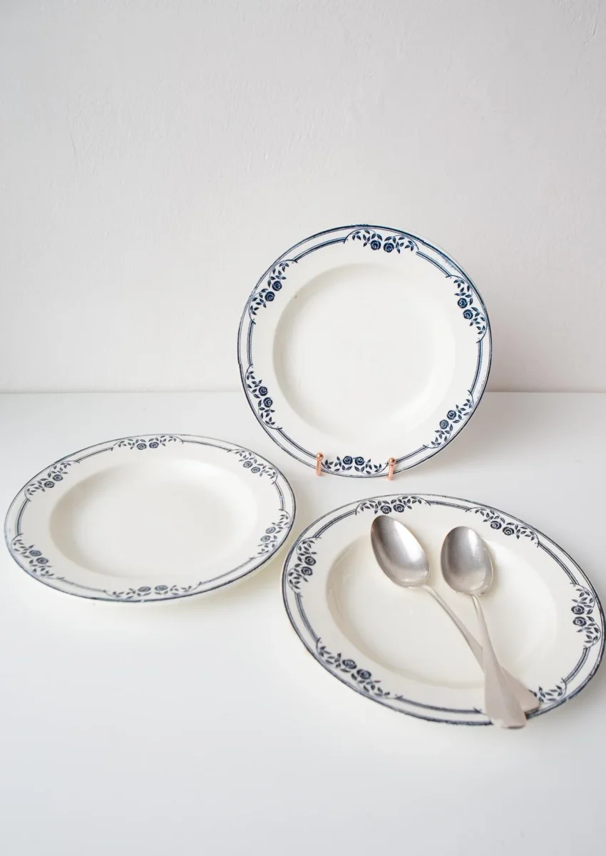 Antique French ironstone soup bowls. Signed Saussure Salins. Price per 2 UNITS. No chips or cracks. Dimensions: ⌀ 25 cm. We ship worldwide. Shipping costs will be added at checkout