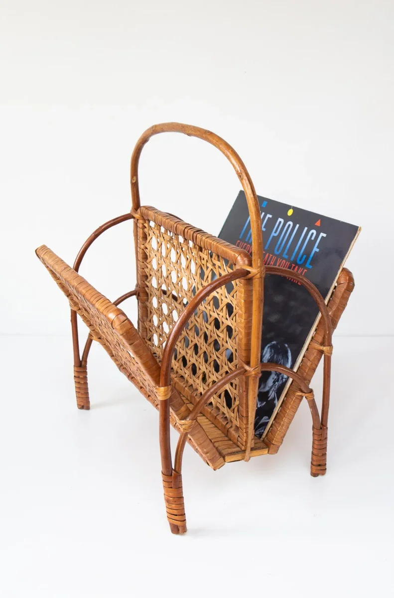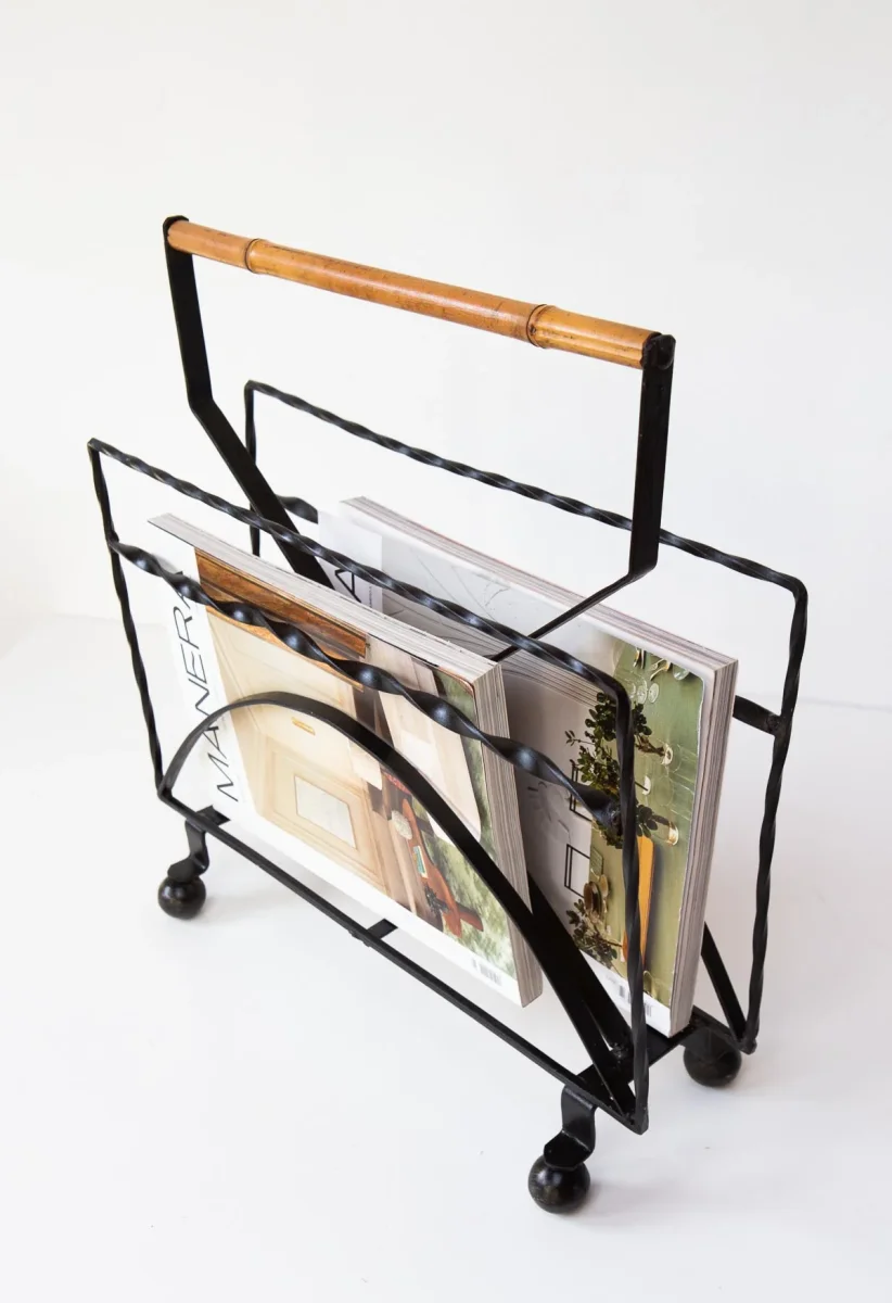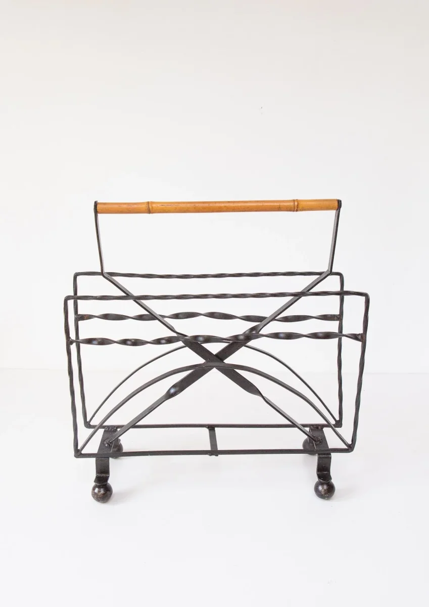 Revistero francés de forja y mango de bambú de la década de los 50.