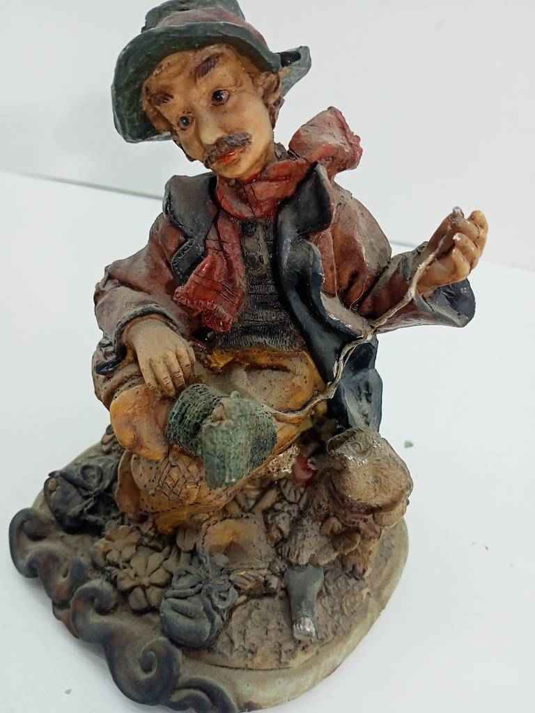 Figura muy bonita y original que ha sido realizada con gran precisión y detalle en la que podemos observar a un anciano que está tirando de un hilo, a sus pies un pequeño perro lo mira con alegría. Es una figura ideal para colocar en un salón comedor o en un recibidor y hacer resaltar nuestra estancia. Como podemos observar en las fotografías se encuentra en buenas condiciones.