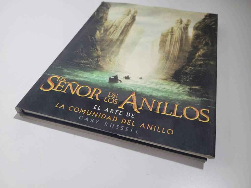 Libro de arte de la famosa trilogía dirigida por Peter Jackson el Señor de los anillos por Gary Russell. En concreto a la primera película de la trilogía “La comunidad del anillo”. Se trata de una pieza ideal para amantes o coleccionistas de la famosa obra de J.R.R Tolkien. Como podemos observar en las fotografías presenta desgaste del tiempo.