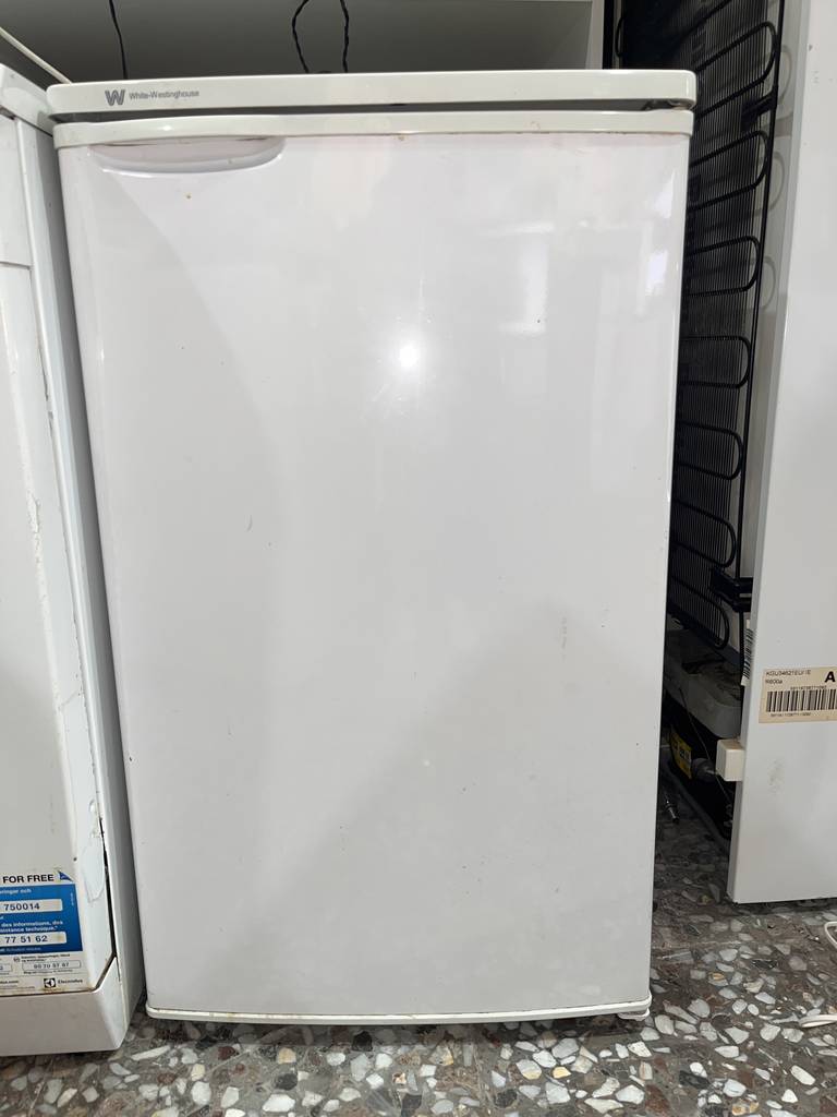 Nevera de tamaño medio en color blanco de la marca White Westinghouse. Se trata de una nevera pequeña que tiene una única puerta y en su interior cuenta en la parte superior con un congelador y en la inferior dos lejas y un cajón ideal para frutas o verduras. También cuenta en la puerta con tres lejas. Es una nevera muy práctica perfecta para ponerla en una cocina. Como se puede observar en las fotografías se encuentra en buenas condiciones.
