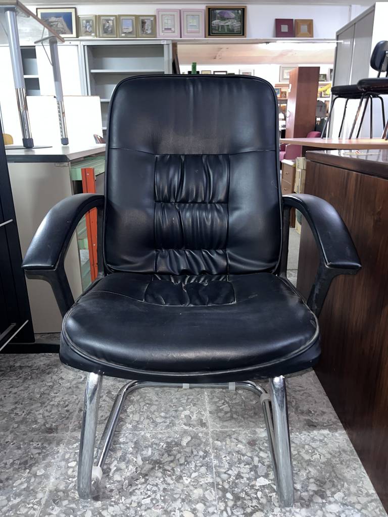 Silla de despacho fabricada en material sintético de imitación piel de color negro. Se trata de una silla de despacho que tiene un asiento y un respaldo unidos, dos reposabrazos cómodos y dos patas robustas de metal plateado. Es una silla ideal para tenerla en el despacho del hogar. Como se ve en las imágenes está en buenas condiciones.