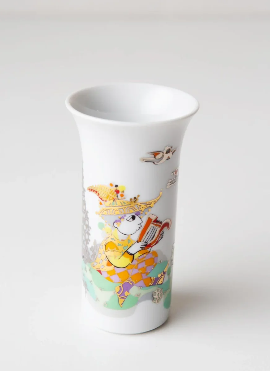 Pequeño jarroncito (mide 10 cm de alto!!) de la más fina porcelana Rosenthal con un dibujo colorista y delicado